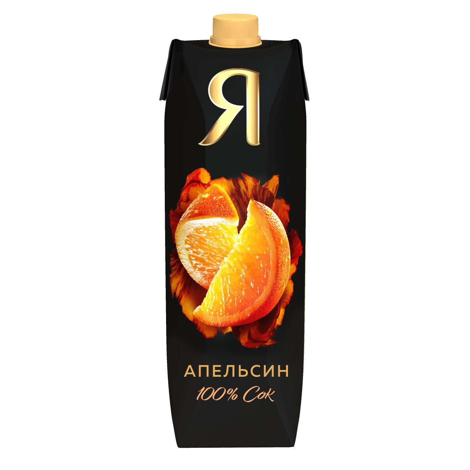 Сок «Я» апельсин с мякотью — 100% апельсиновый сок с мякотью. Напиток изготовлен из вкусного и сладкого свежевыжатого апельсинового сока. В коктейле содержится большое количество витаминов, особенно витамина С, микроэлементов и пектиновых веществ. Таким образом, один стаканчик сока способствует обогащению нашего организма витаминами, улучшению работы нервной системы, укреплению иммунитета и омоложению организма. Налит в картонный пакет объемом 0,97 л с винтовой крышкой. В составе этого сока отсутствуют ГМО, искусственные красители, вредные консерванты. Таким образом, коктейль имеет натуральный и вкусный освежающий вкус спелого апельсина. Он станет идеальным дополнением к повседневному питанию и для взрослых и для детей школьного и дошкольного возрастов. Без добавления сахара.