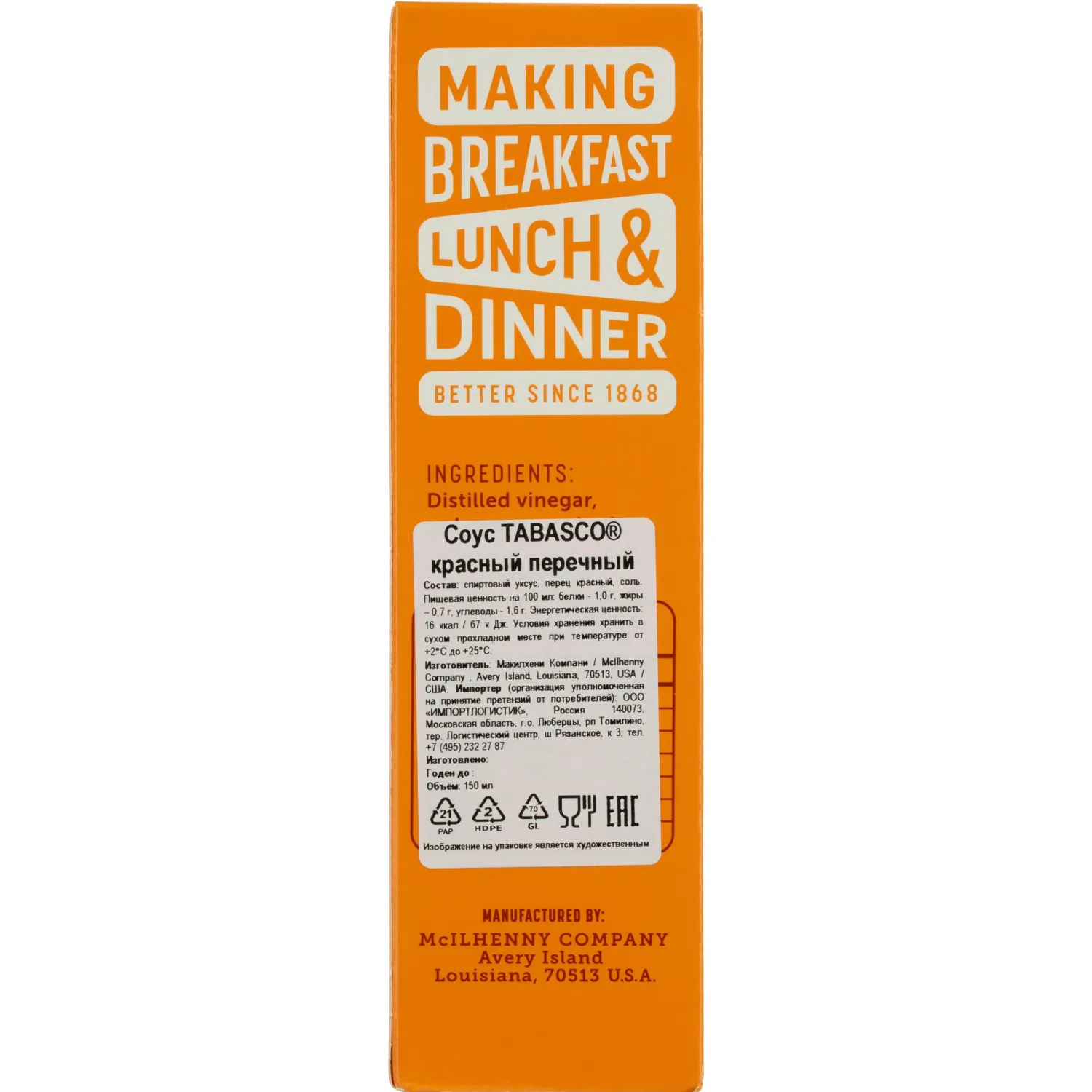 О товаре «Соус Tabasco Оригинальный Красный Перечный, 150мл»