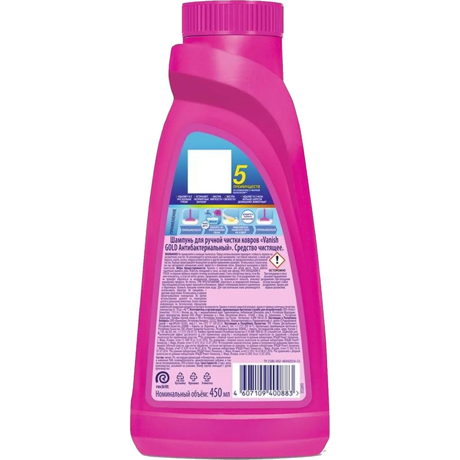 Назначение: используйте шампунь Vanish для удаления въевшейся грязи и пыли с ковров и обивки. Густой шампунь образует обильную пену и устраняет неприятные запахи, а ваш ковёр и обивка мебели сияют чистотой и свежестью — эффект значительно сильнее, чем при обычной уборке пылесосом