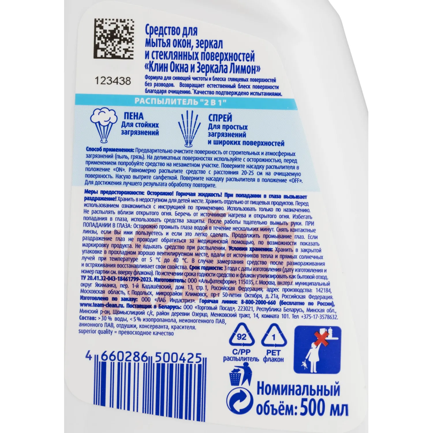 О товаре «Средство для мытья стекол и зеркал Клин Лимон 0.5 л»