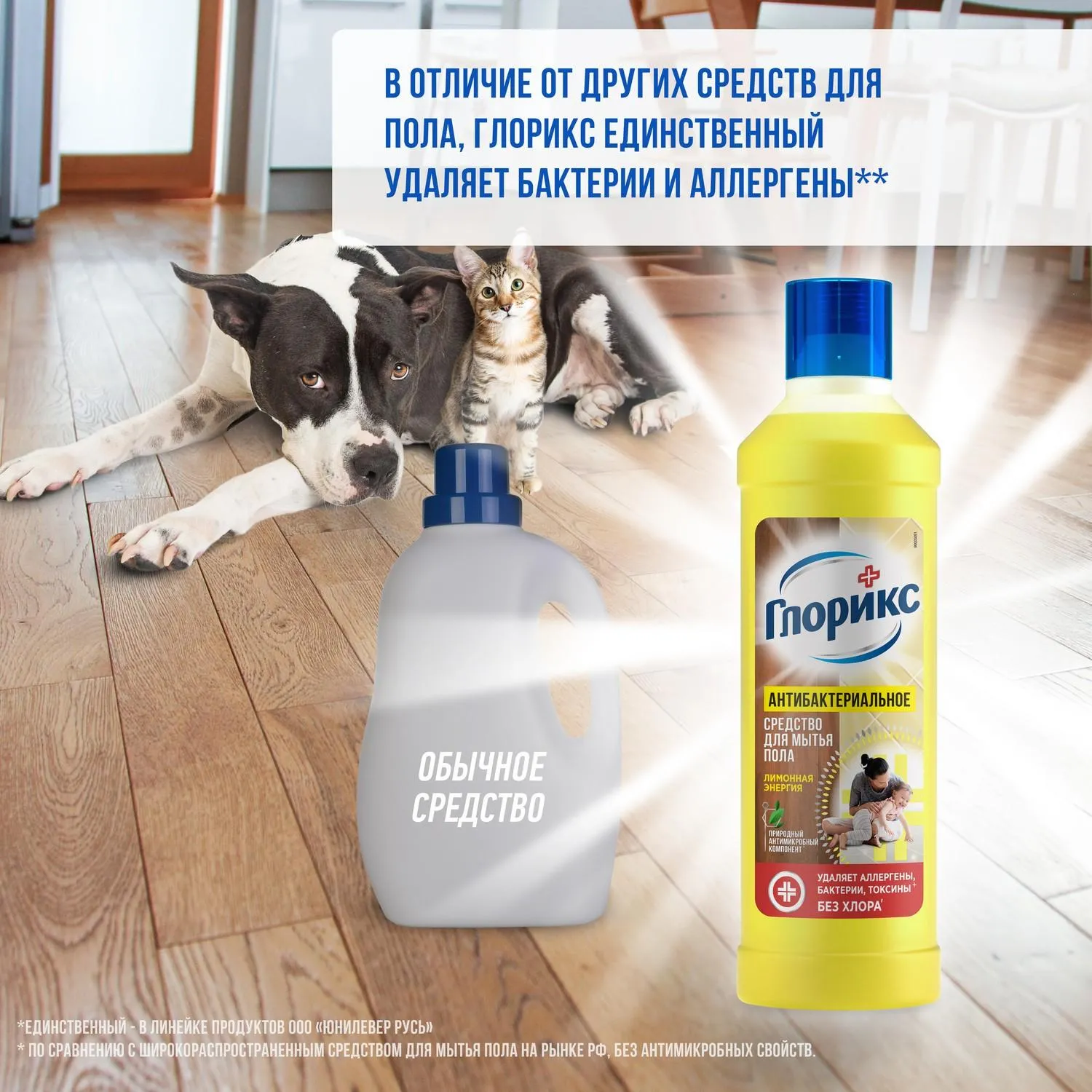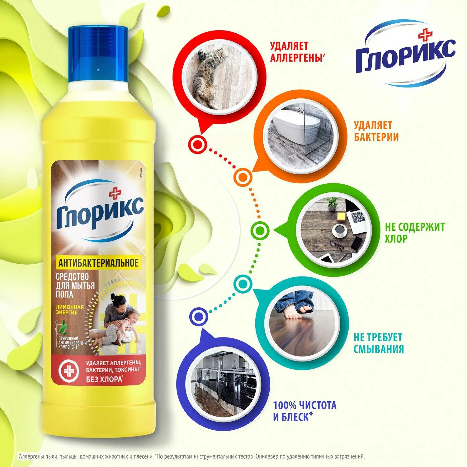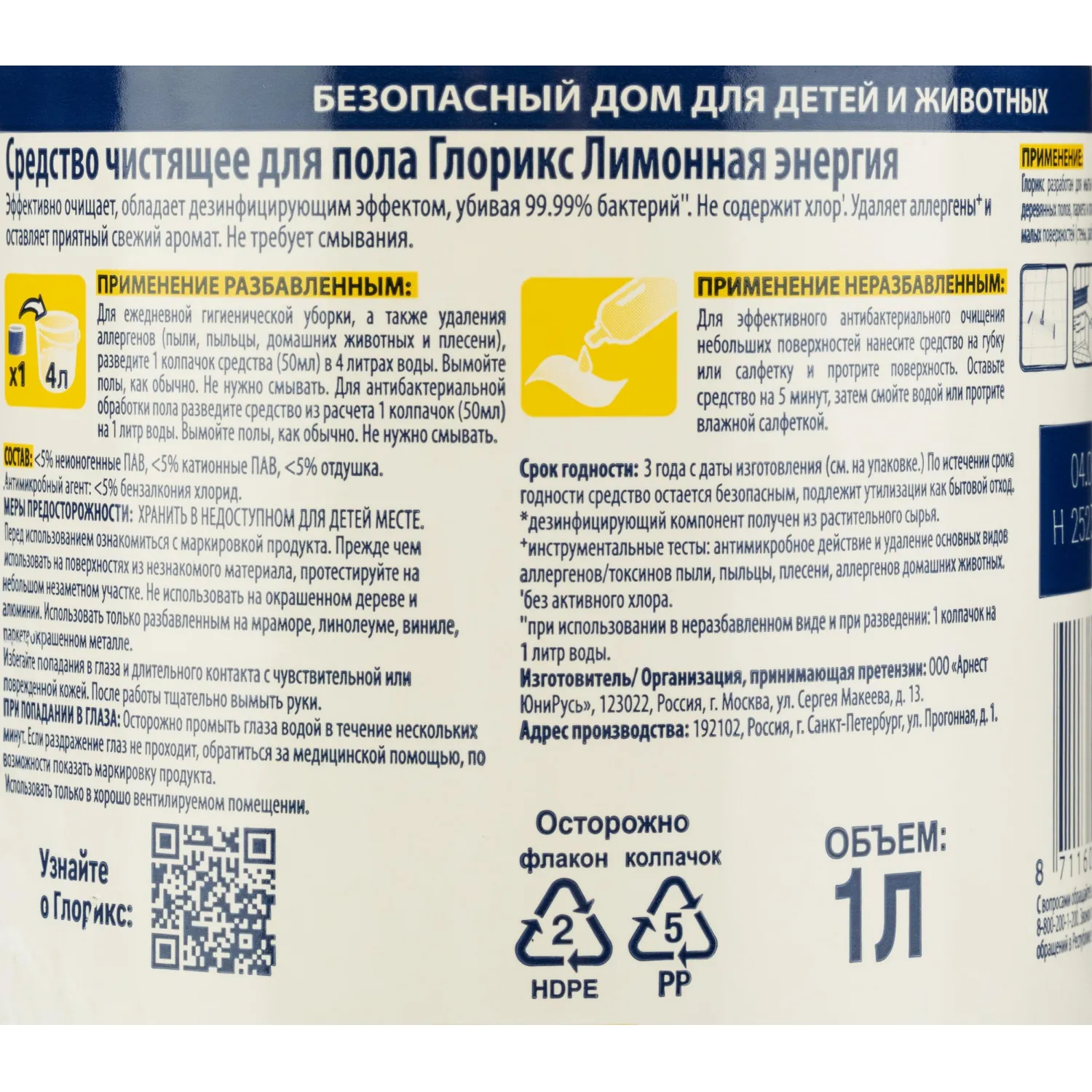 О товаре «Средство для мытья пола с дезинфицирующим эффектом Глорикс Лимонная энергия 1 л»