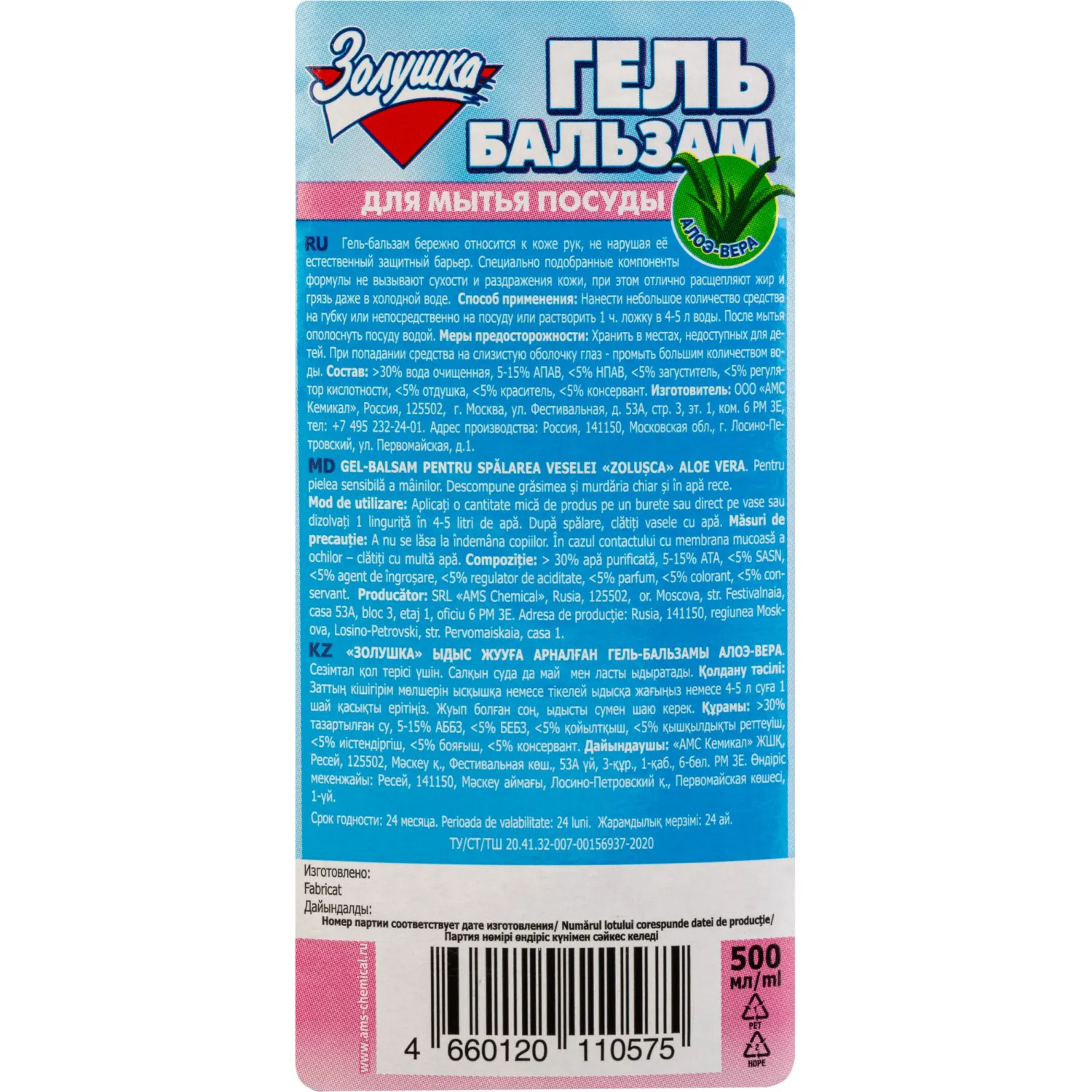 О товаре «Средство для мытья посуды Золушка Алоэ-вера гель 0.5 л с дозатором»