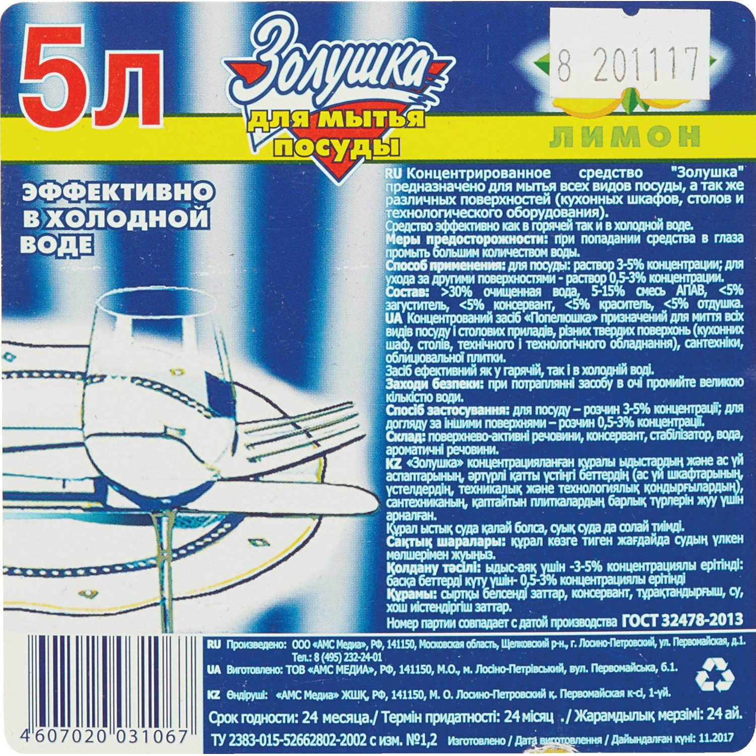 О товаре «Средство для мытья посуды Золушка Лимон гель 5 л (канистра)»
