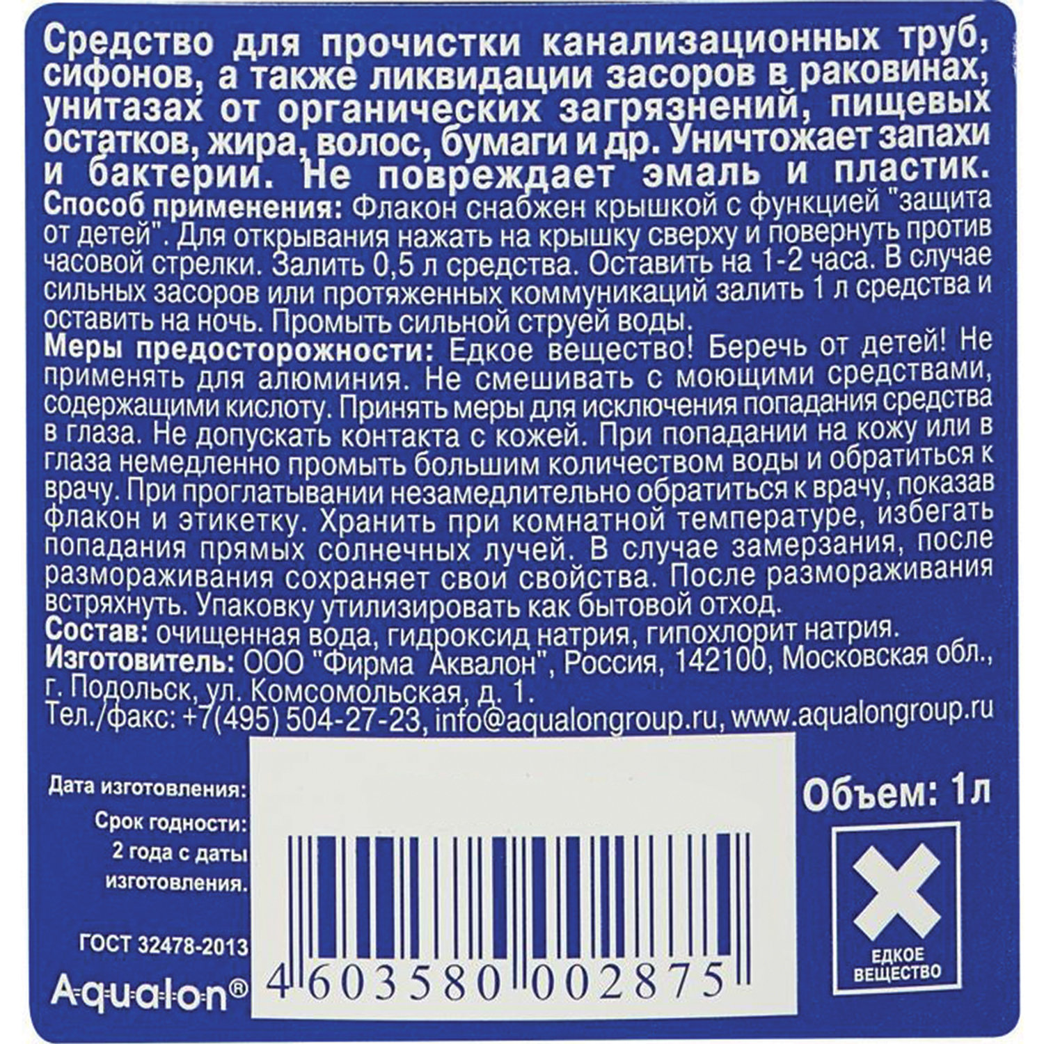 Очищенная вода, гидроксиды (5-15%), гипохлорит натрия < 5%.