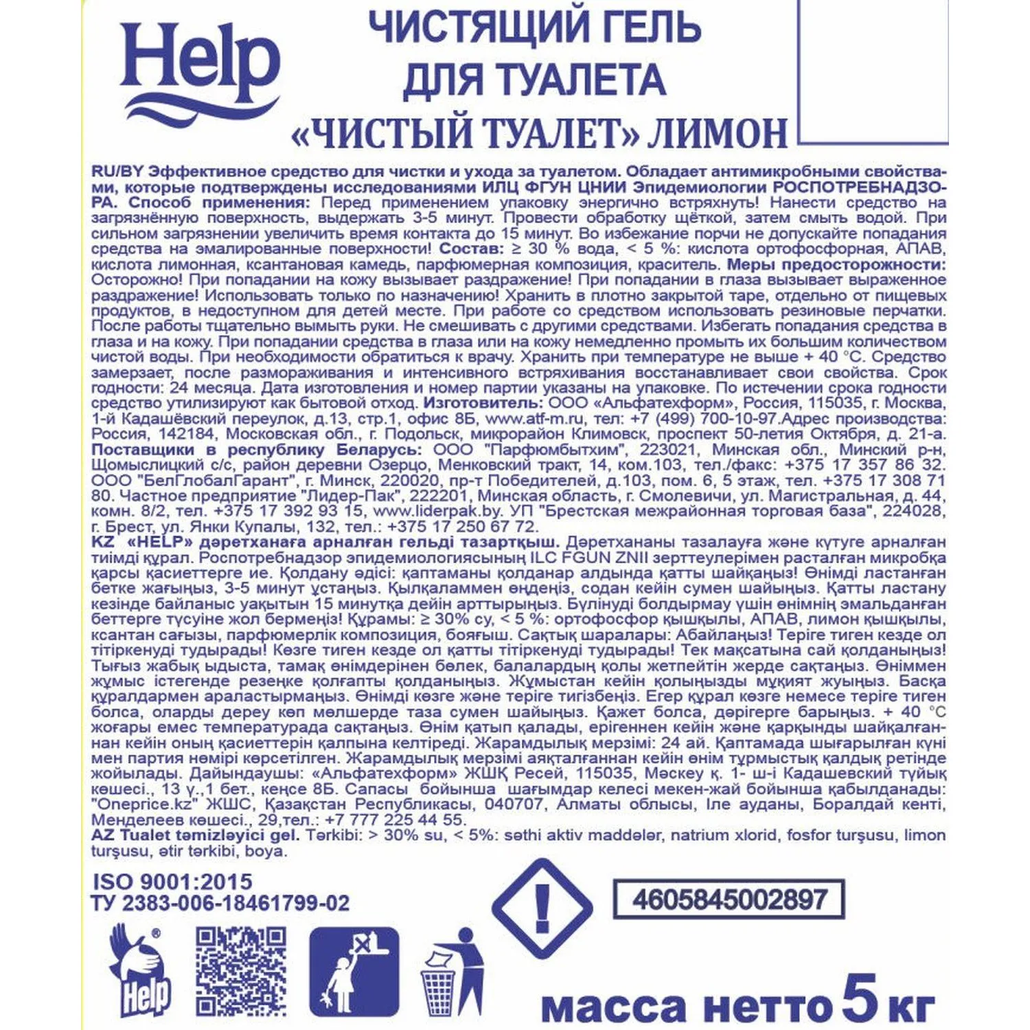 О товаре «Средство для сантехники чистящее Help Чистый туалет 5 л для уборки туалета»