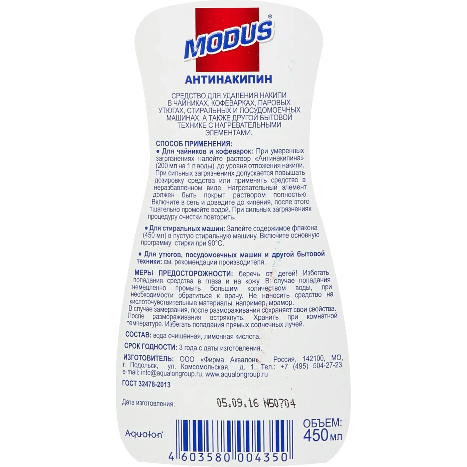 О товаре «Средство для удаления накипи Modus Антинакипин жидкость 450 мл»