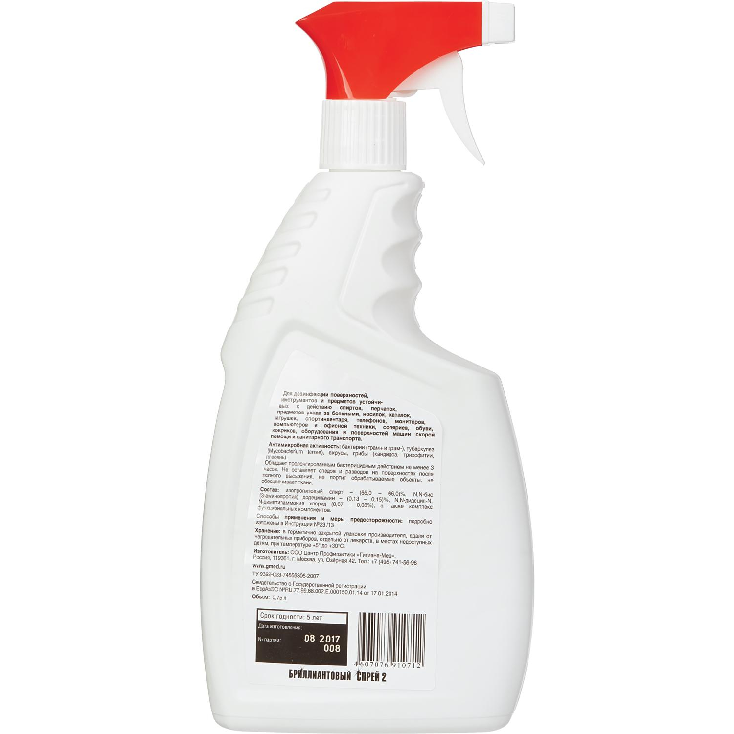 О товаре «Дезинфицирующий спрей Бриллиантовый спрей 2 спиртовой 750 мл»