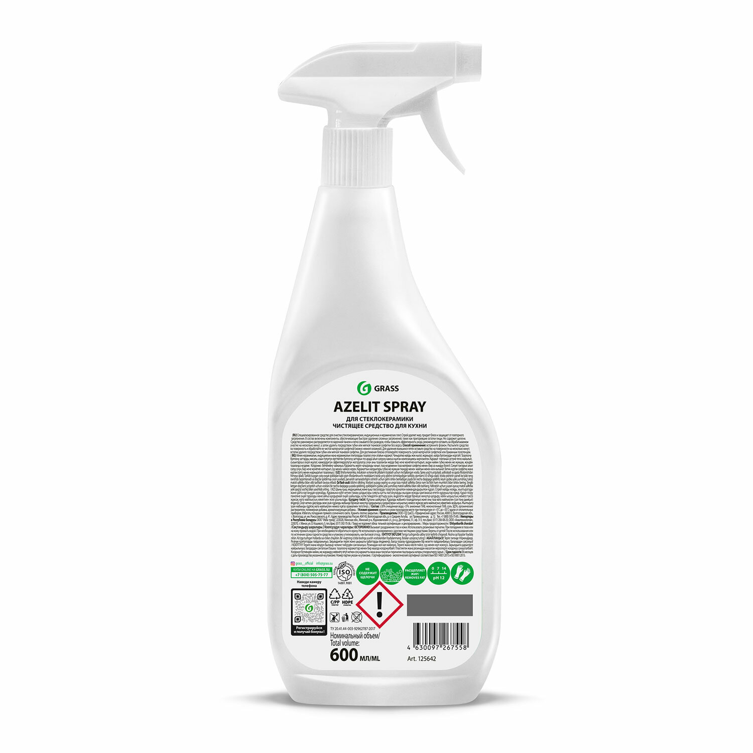 О товаре «Чистящее средство (жироудалитель) для стеклокерамики Grass Azelit Антижир 0.6 л от жира и нагара пена»