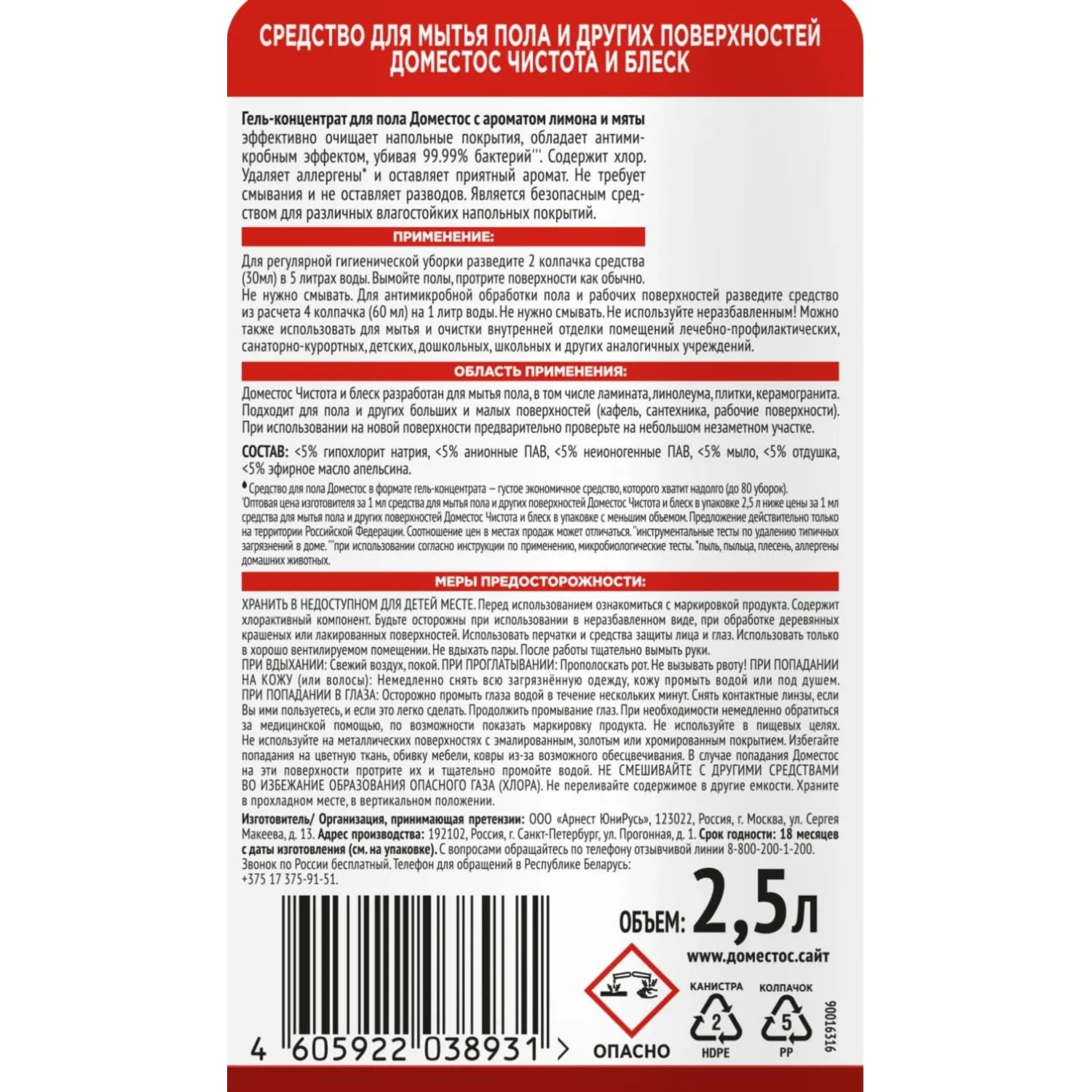 Любые вопросы по товару «Средство для мытья пола Доместос Лимон и мята 2,5л» вы можете задать нашим
