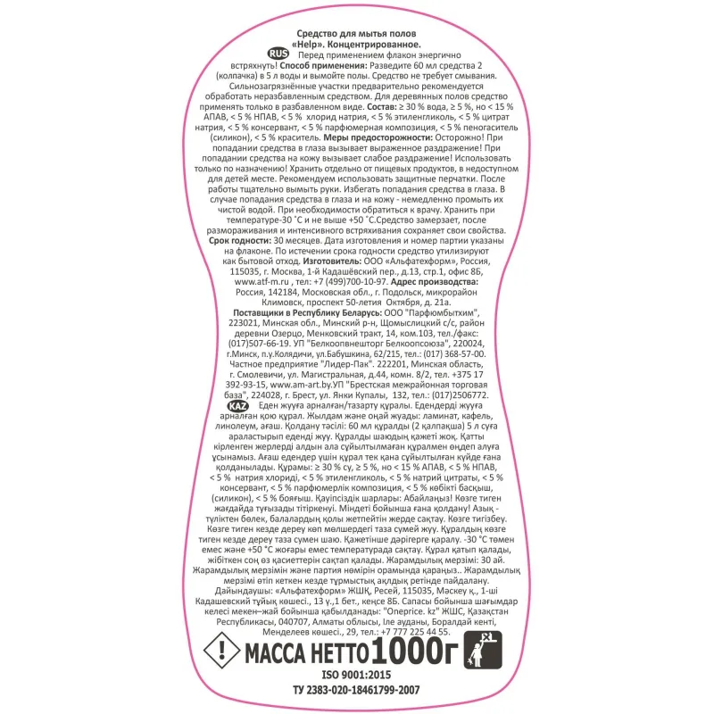 О товаре «Средство для мытья пола Help Морской бриз 1000мл»