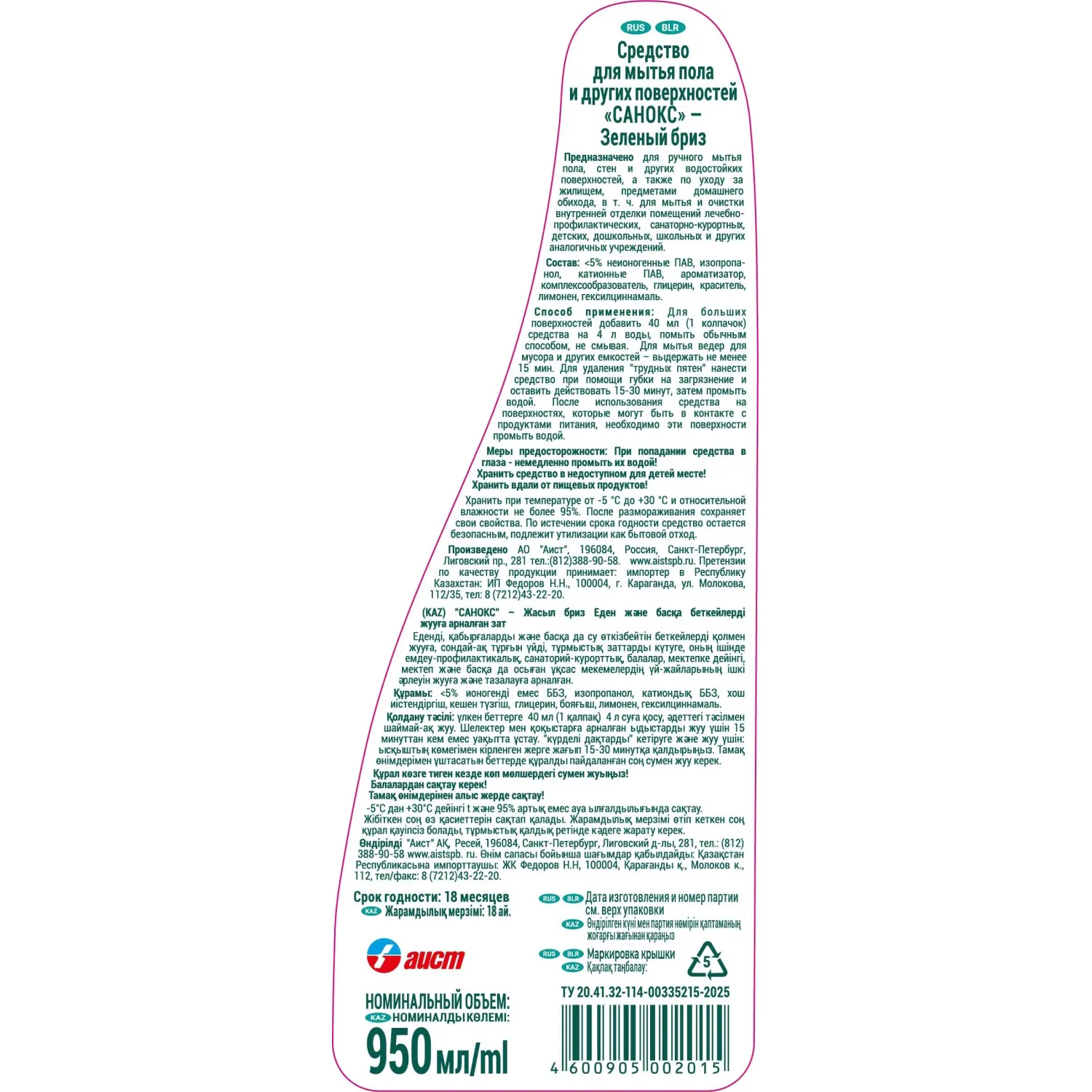 О товаре «Средство для мытья пола и других поверхностней САНОКС Зелёный бриз 950мл»