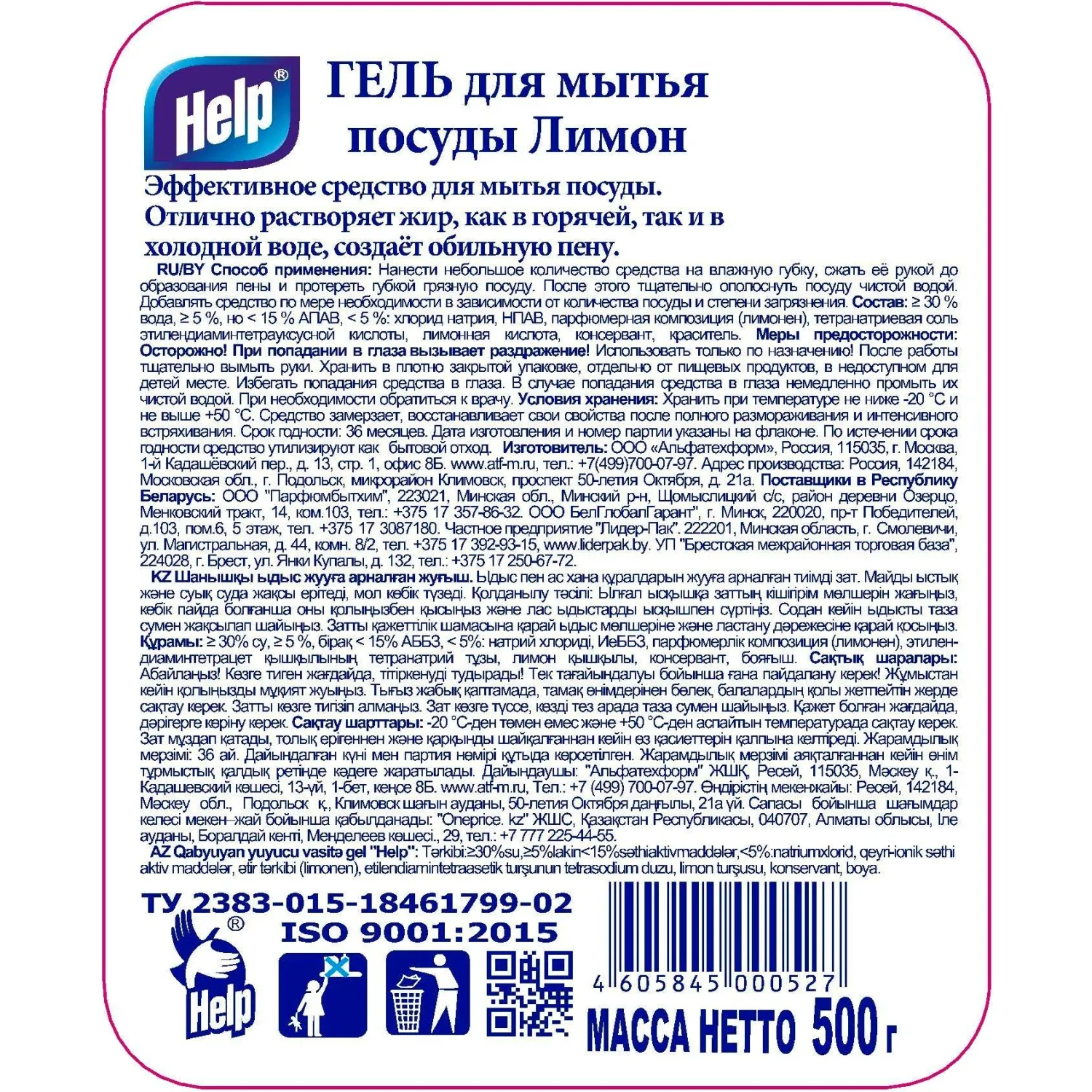 О товаре «Средство для мытья посуды Help Лимон 500 г (гель)»