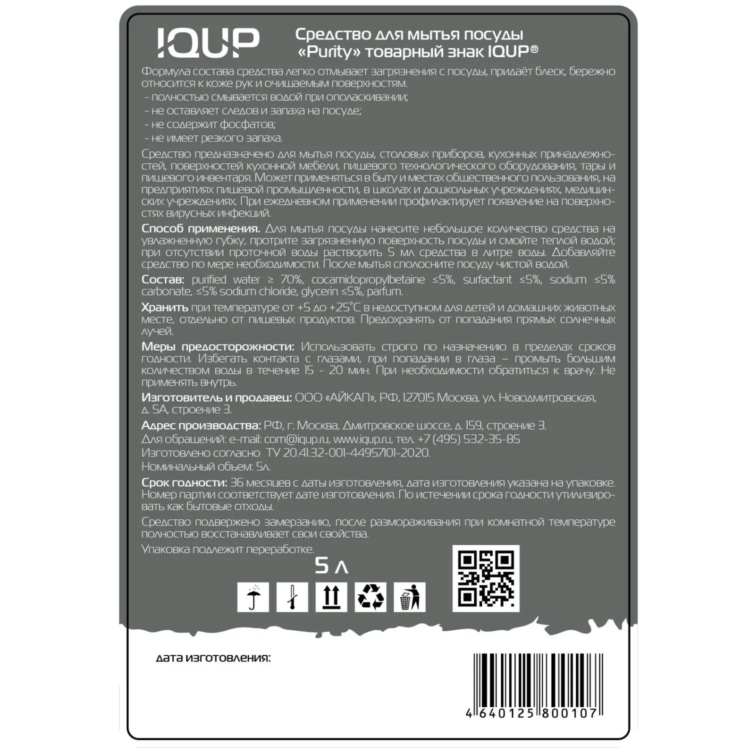 О товаре «Средство для мытья посуды IQUP Purity Сrystal 5 л ПЭТ»