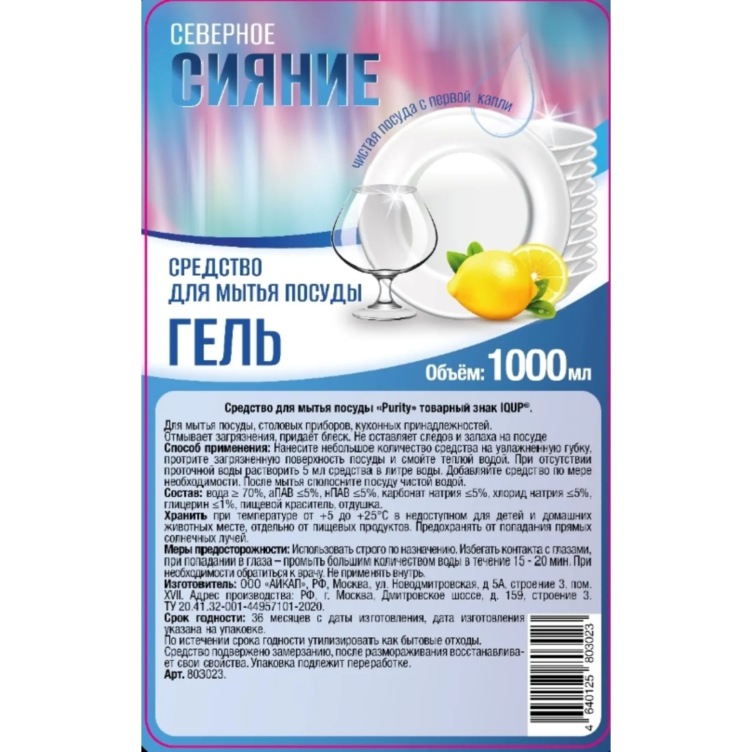 Средство для мытья посуды IQUP Северное сияние Лимон гель 1 л