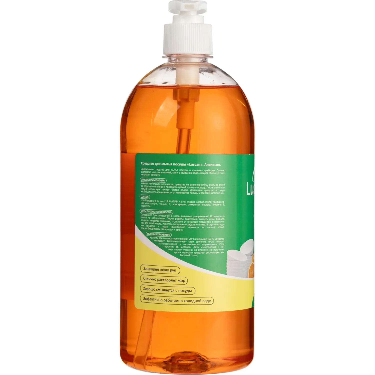 О товаре «Средство для мытья посуды Luscan Бальзам-апельсин гель 1 л с дозатором»