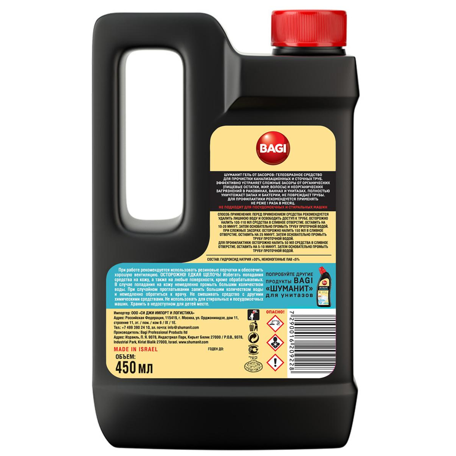 О товаре «Средство для прочистки труб Bagi Шуманит гель 450 мл»
