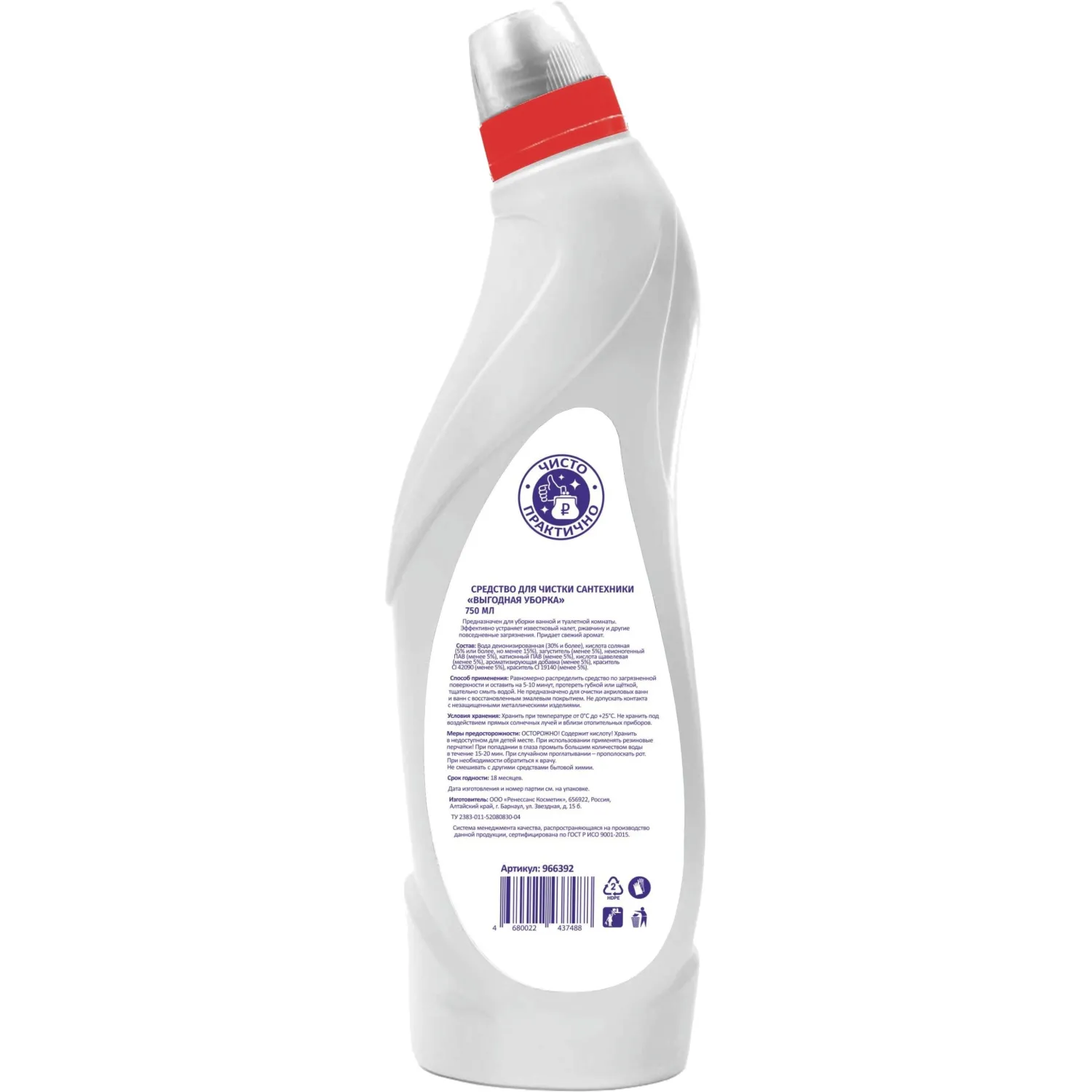 О товаре «Средство для сантехники чистящее Выбор есть 0.75 л для уборки туалета и ванной»