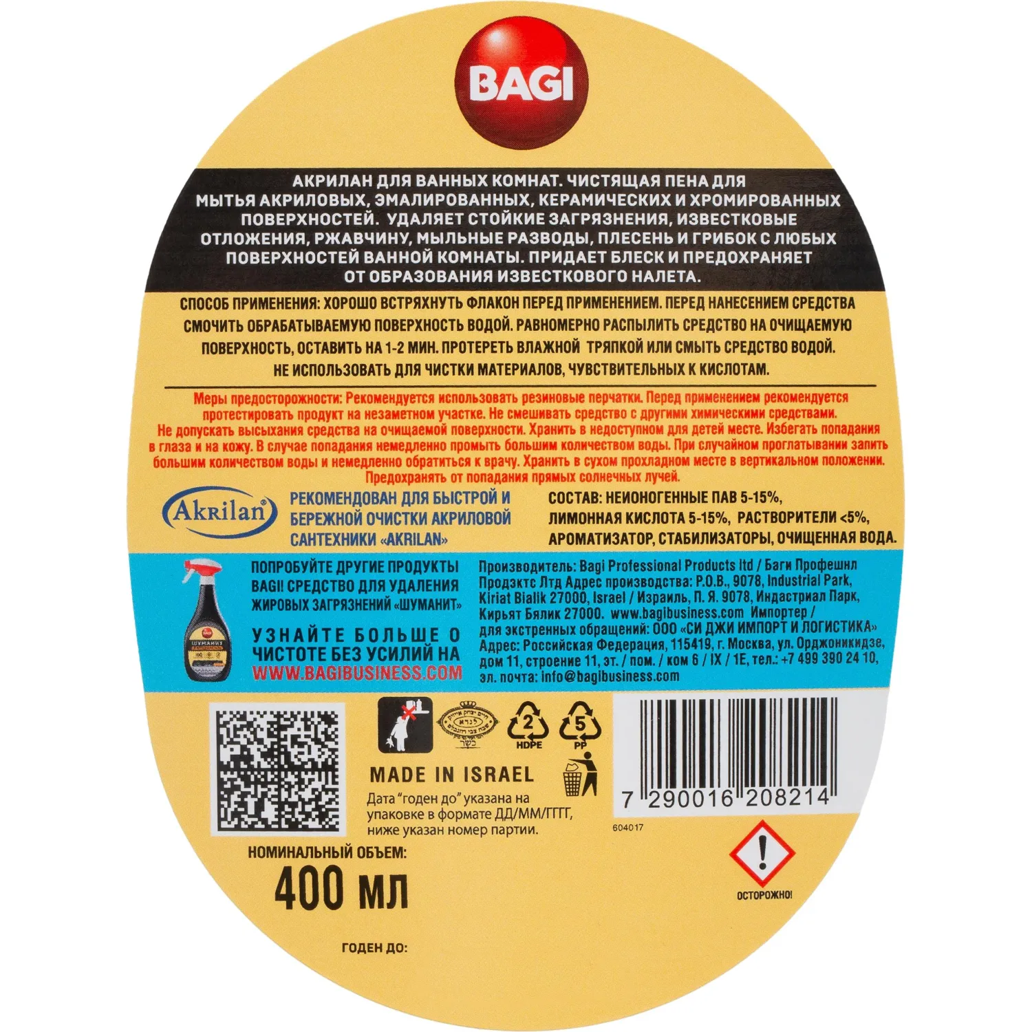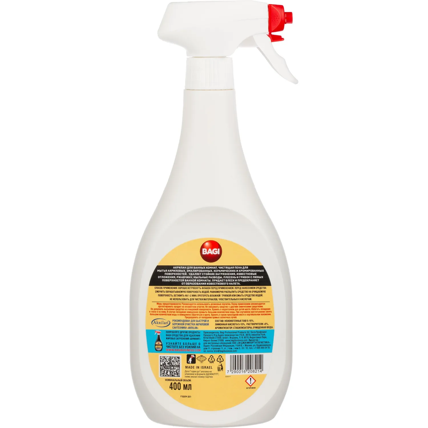 Средство для сантехники чистящее Bagi Акрилан 0,4 л для чистки ванн и душевых/для уборки туалета и ванной/для акриловых ванн