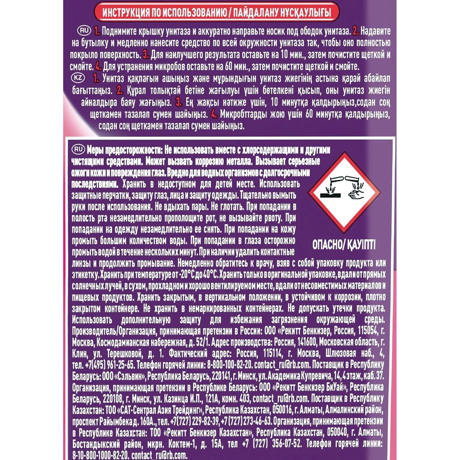 Назначение: многофункциональное чистящее средство для унитазов, которое: