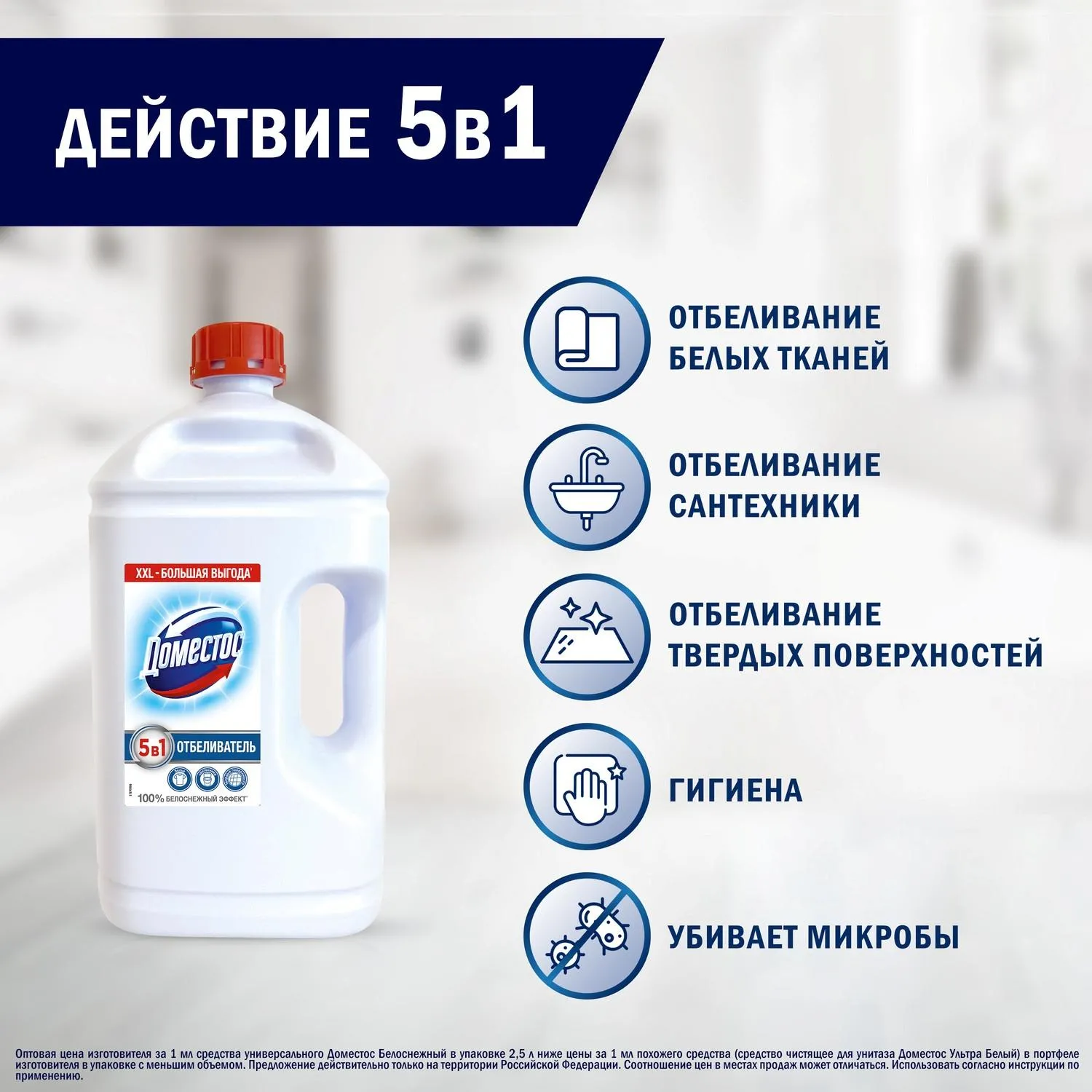 Назначение: средство Доместос Белоснежный предназначено для отбеливания.