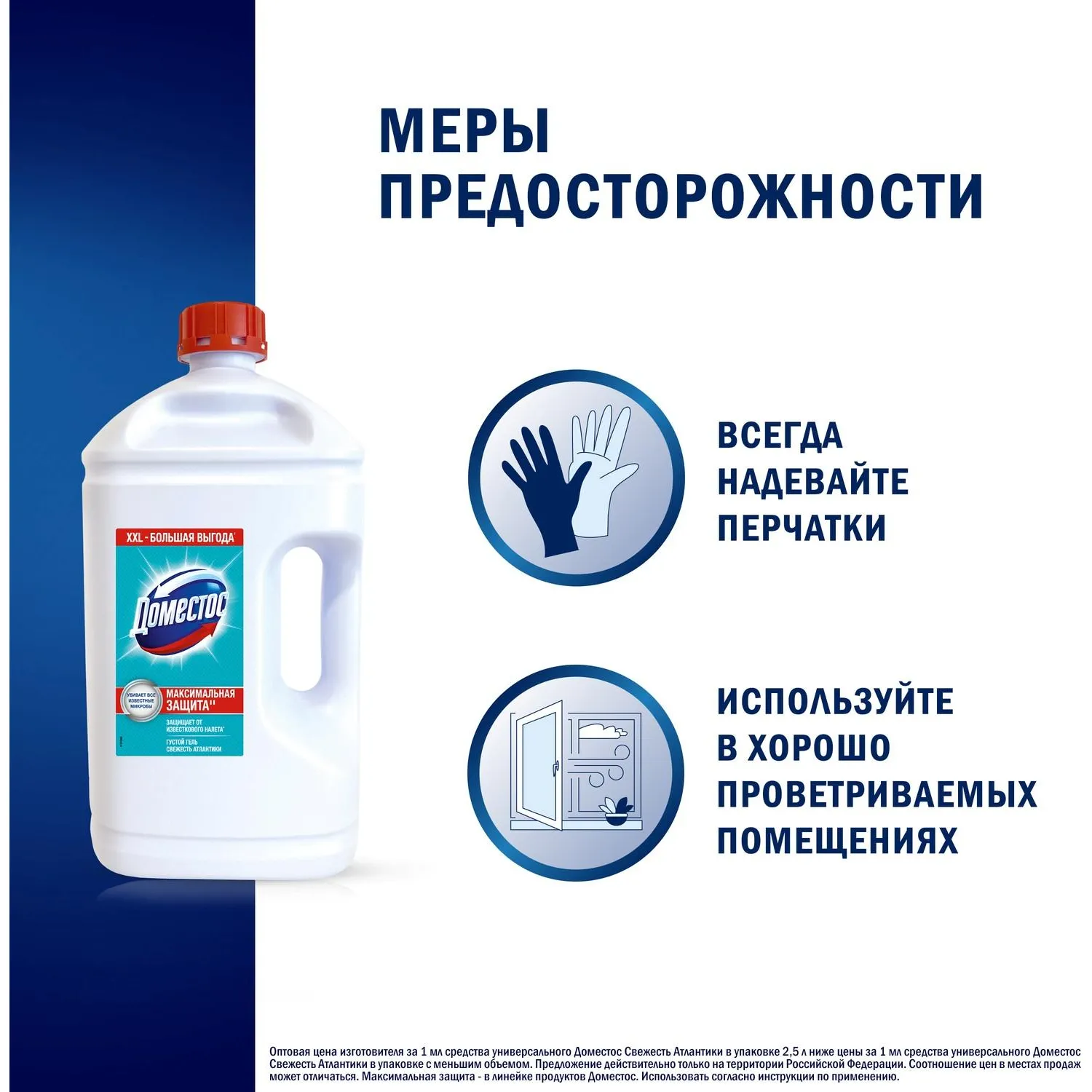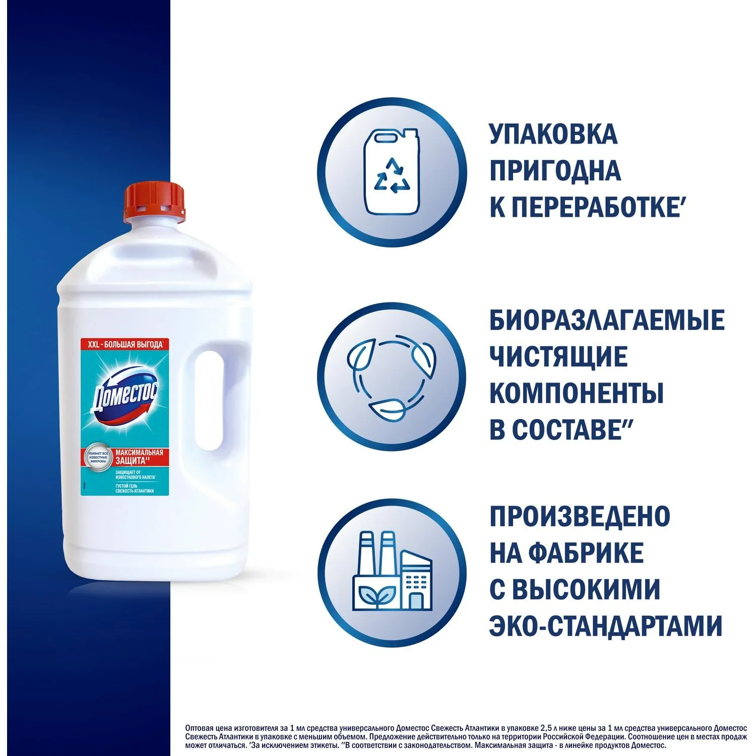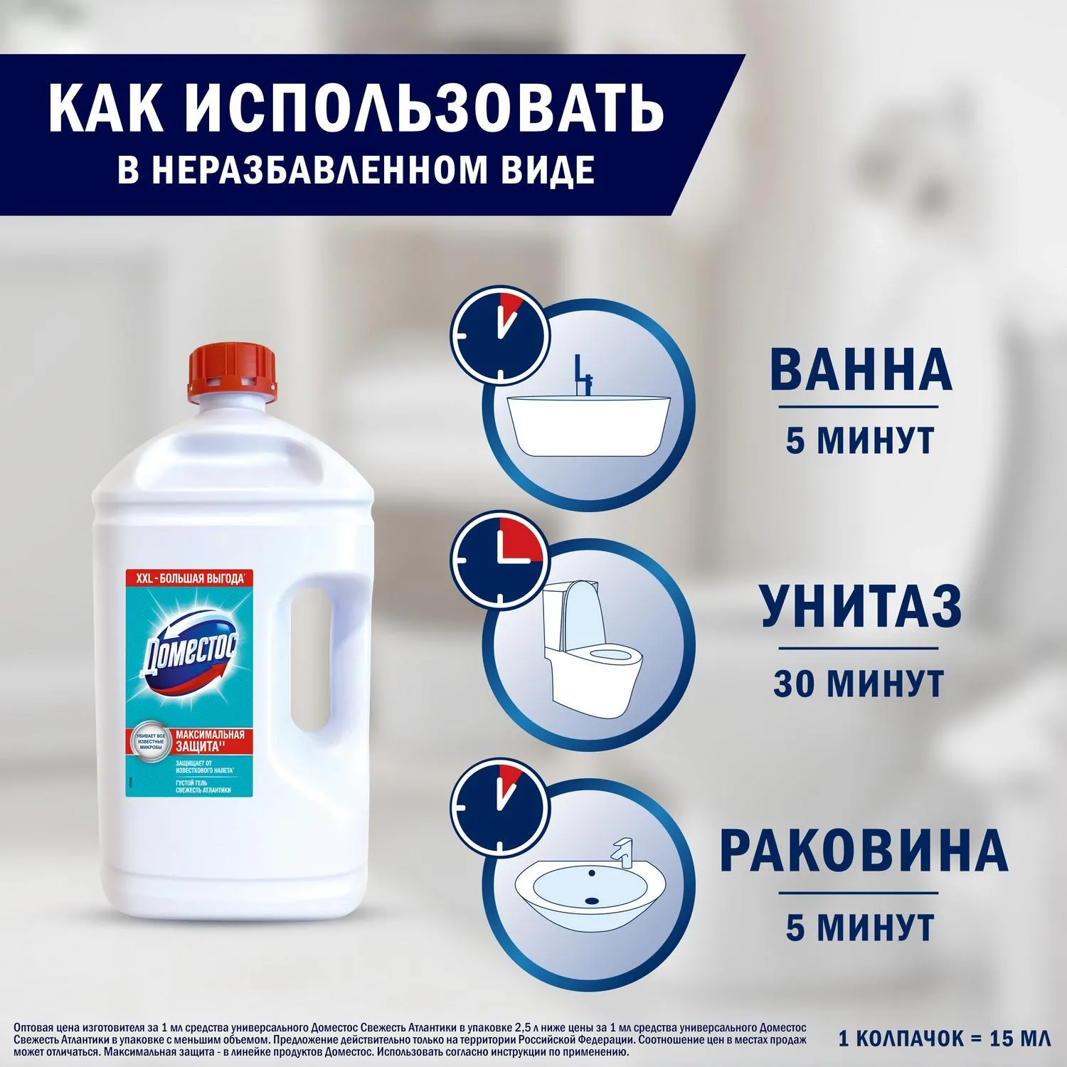 О товаре «Средство для сантехники Доместос универсальное Свежесть Атлантики 2,5л»