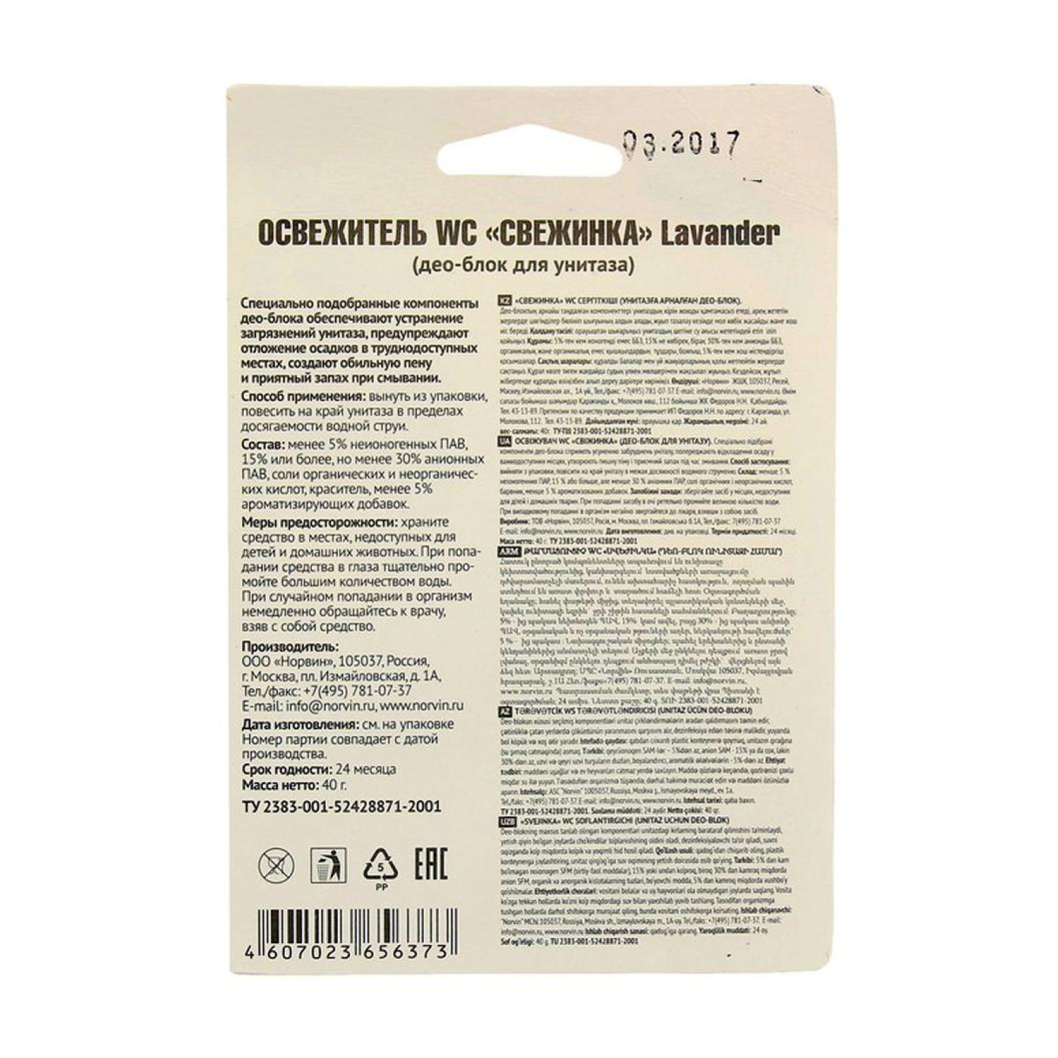 О товаре «Блок для унитаза гигиенический Свежинка Лаванда»