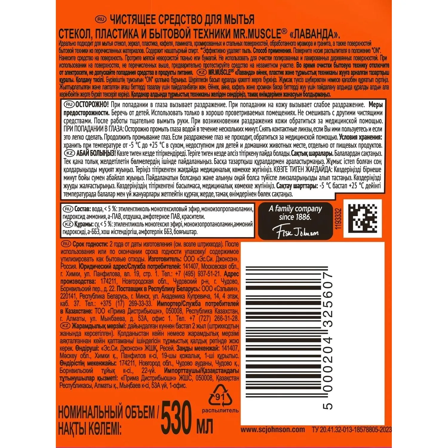 Средство для стекол и зеркал Мистер Мускул Лаванда 530 мл (с нашатырным спиртом)