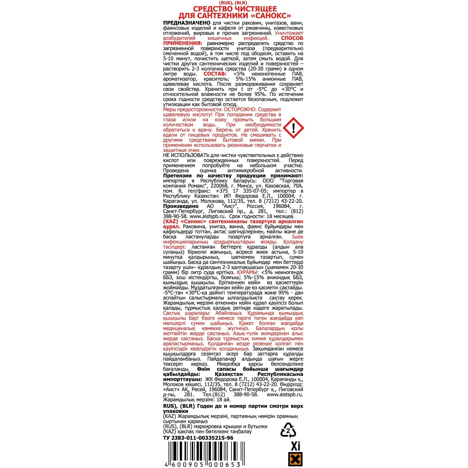 О товаре «Средство для сантехники Санокс от ржавчины 5 л»