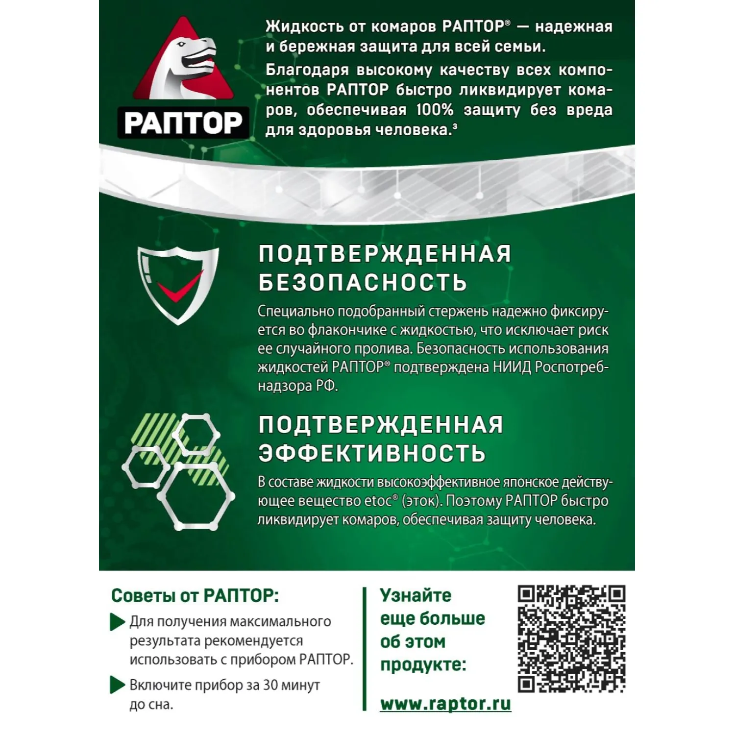 О товаре «Средство от насекомых Раптор от комаров жидкость 30 ночей»