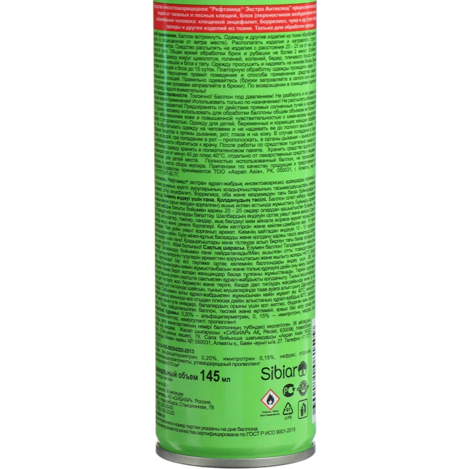 Состав: альфациперметрин 0,2%, имипротрин 0,15%, отдушка <5%, сорбитан олеат <5%, изопарафин <5%, бутан/пропан/изобутан смесь >30%, нефрас >30%.