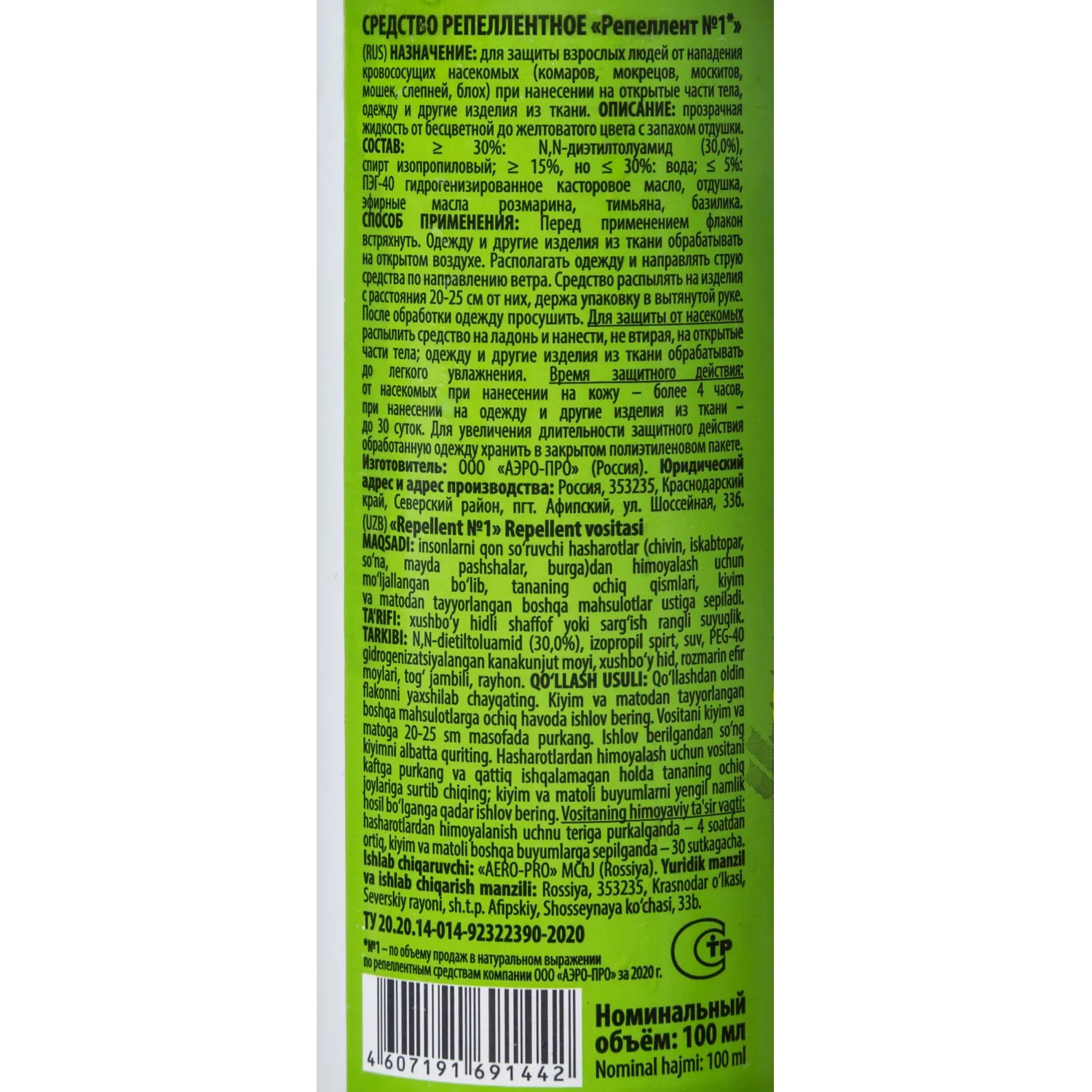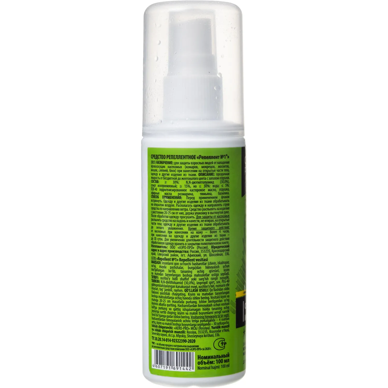 О товаре «Средство от насекомых Спрей-Репеллент №1 от комаров/москитов 100мл СПб»