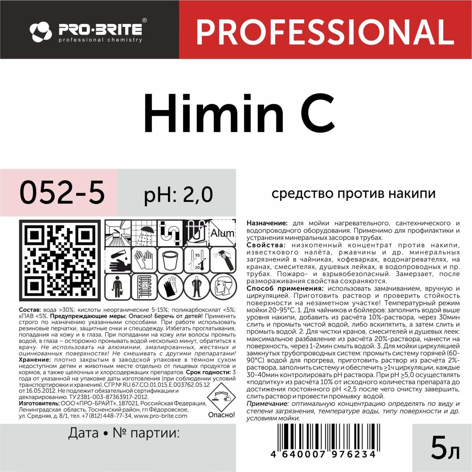 О товаре «Средство для удаления накипи и других минеральных отложений Pro-Brite Himin C 5 л (концентрат)»