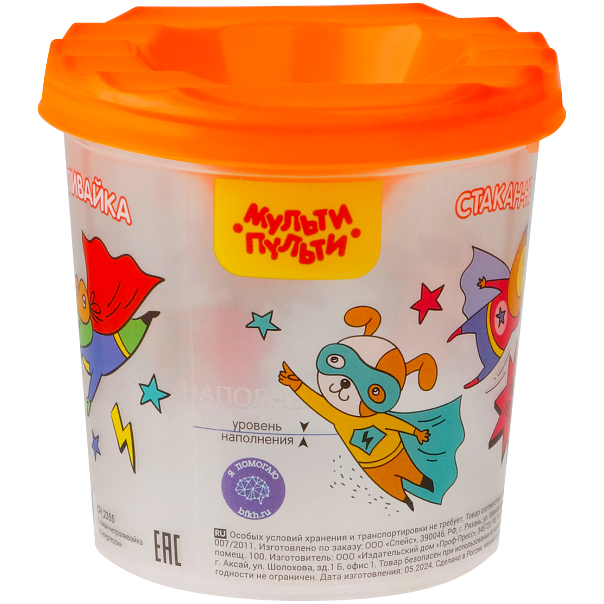 Стакан-непроливайка «Супергерои» бренда «Мульти-Пульти» поможет сохранить рабочее место в чистоте. Изделие сделано из экологически чистого и прочного полипропилена. Крышка в виде воронки, которая плотно прилегает к стакану, не даст воде вылиться, если ребёнок его опрокинет. Полный объём — 250 мл, до уровня — 50 мл. На корпус нанесена специальная отметка, которая показывает, сколько воды можно налить, чтобы она не пролилась при переворачивании стакана.