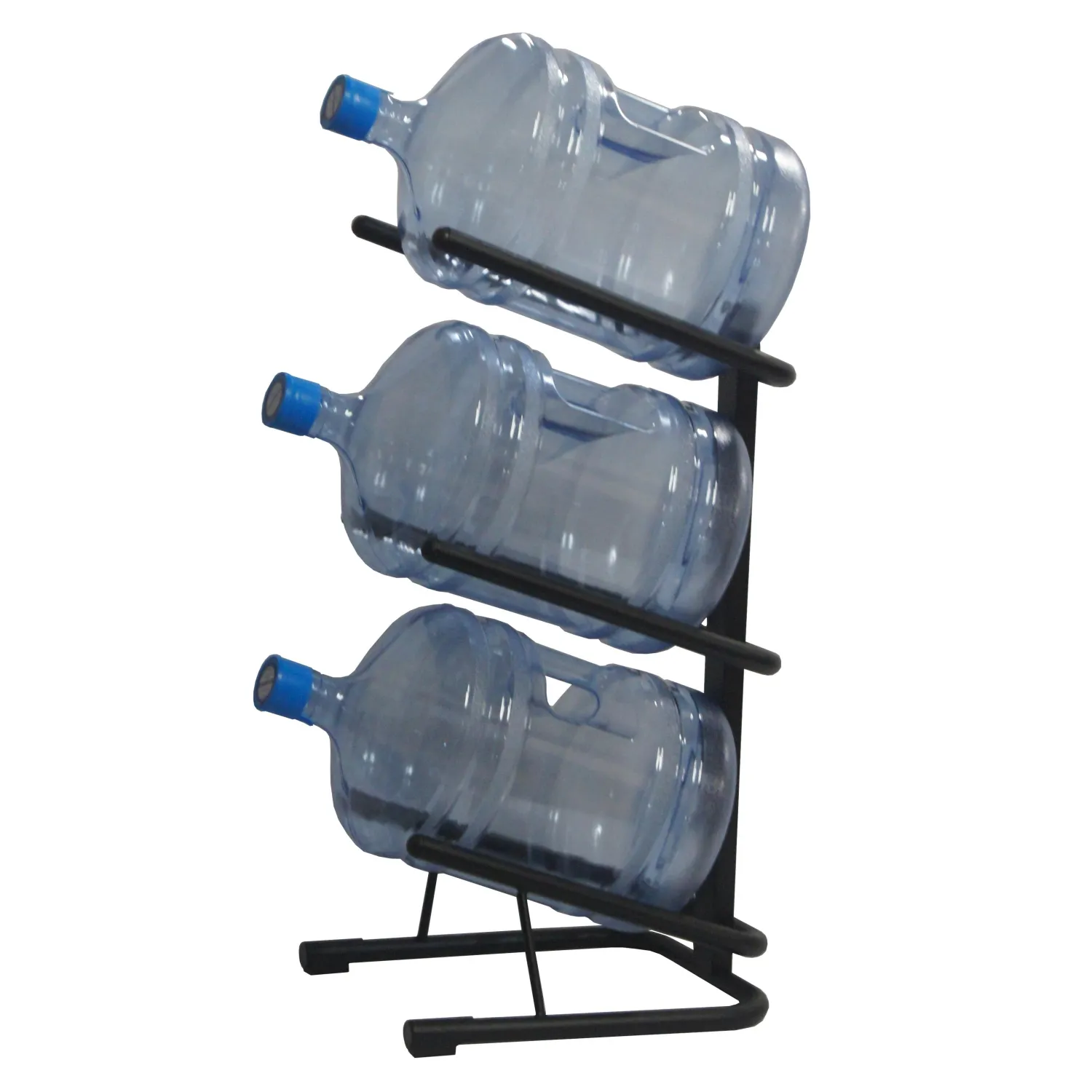 Стеллаж для бутилированной воды Комус Мебель (Cobalt) Бридж-3. Предназначен для организации хранения бутилированной воды в офисе, дома, на складе на минимальной площади. Полки стеллажа имеют оптимальный угол наклона, для удобства размещения и извлечения бутылей. Стеллаж оборудован подпятниками, что позволяет избежать повреждения напольного покрытия при его перемещении. Основание стеллажа не замкнуто, что удобно для уборки пола. Стеллаж имеет порошковое покрытие чёрного цвета, устойчивое к истиранию. Толщина труб из стали равна 1,5 мм. Нагрузка на полку до 25 кг.Конструкция стеллажа не позволяет компенсировать неровности пола. Стеллаж будет устойчивым, если его загрузить наполненными бутылями в соответствии с вместимостью.