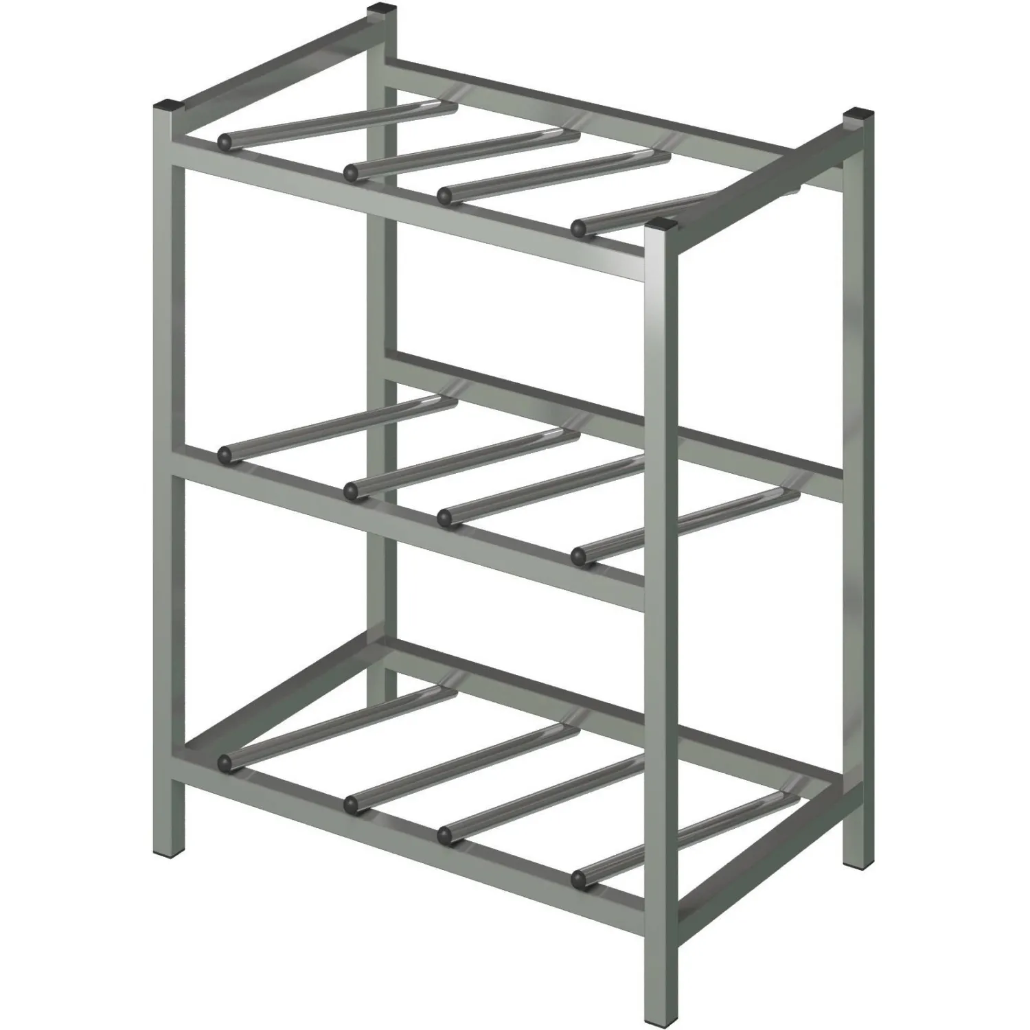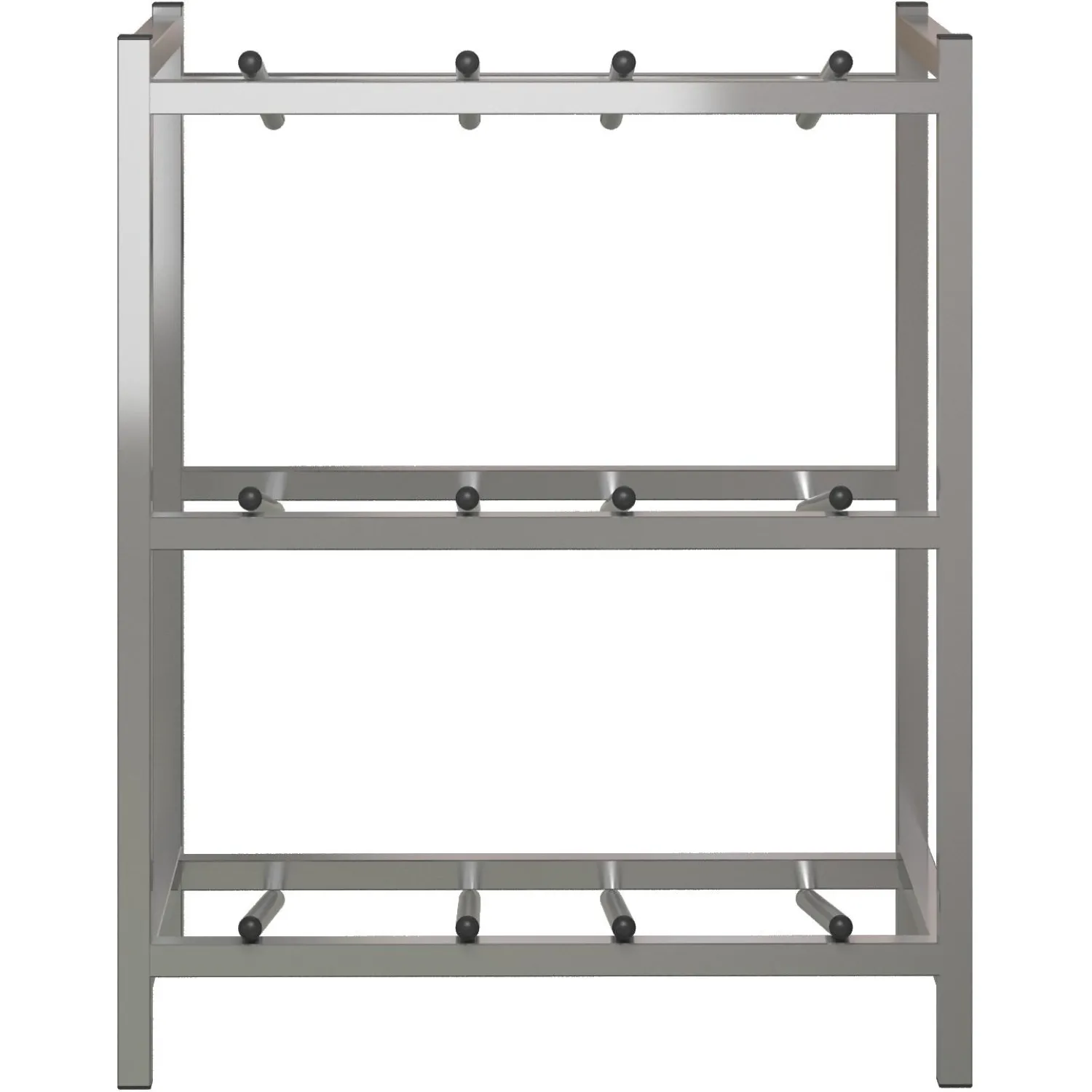 Конструкция стеллажа не позволяет компенсировать неровности пола. Стеллаж будет устойчивым, если его загрузить наполненными бутылями в соответствии с вместимостью.