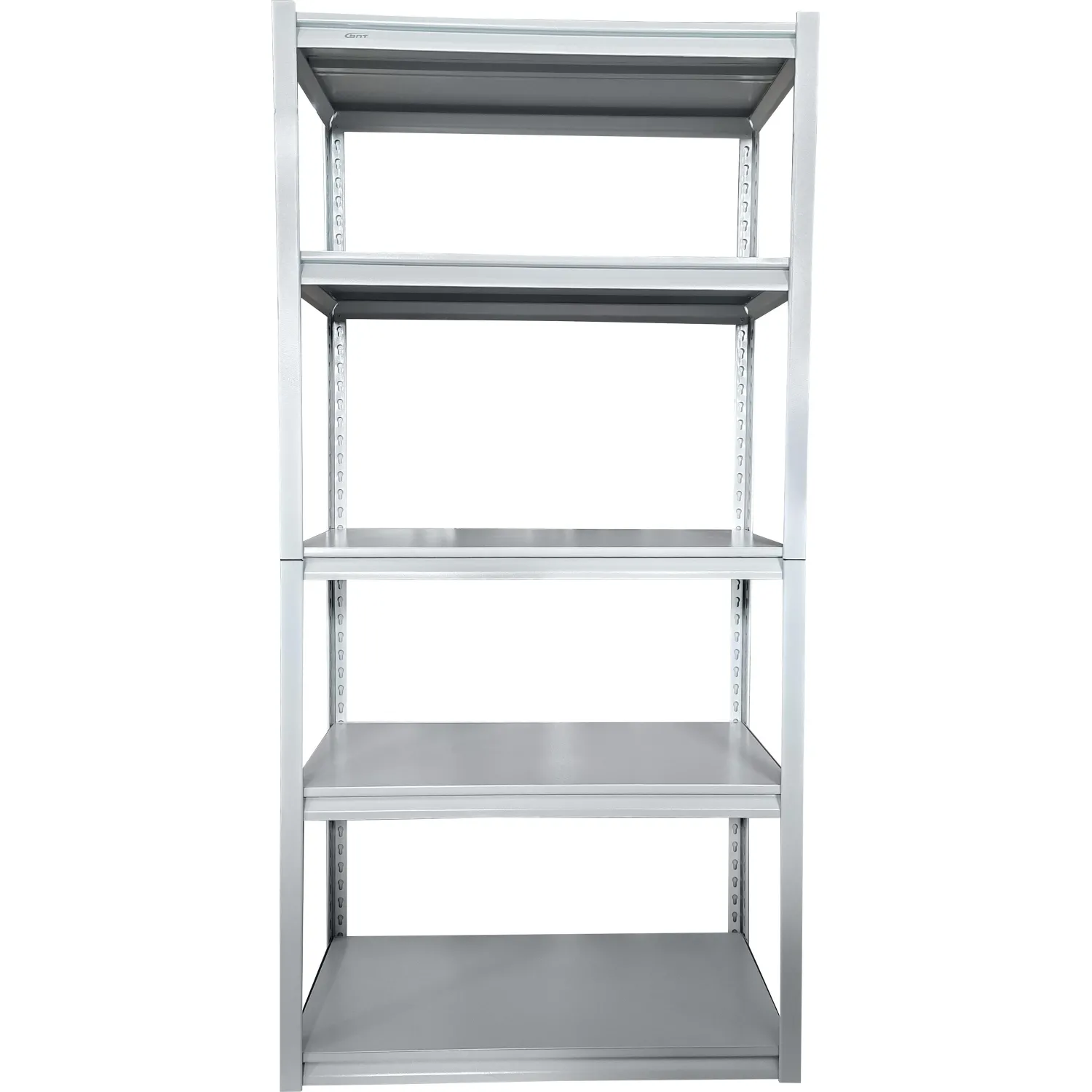 Стеллаж металический серый. Комплект стального быстросборного безболтового стеллажа , 5 полок, стойка из 2-х частей, нагрузка на полку 170 кг, упаковка — 1 шт в коробке из 5-слойного гофрокартона; порошковое покрытие.