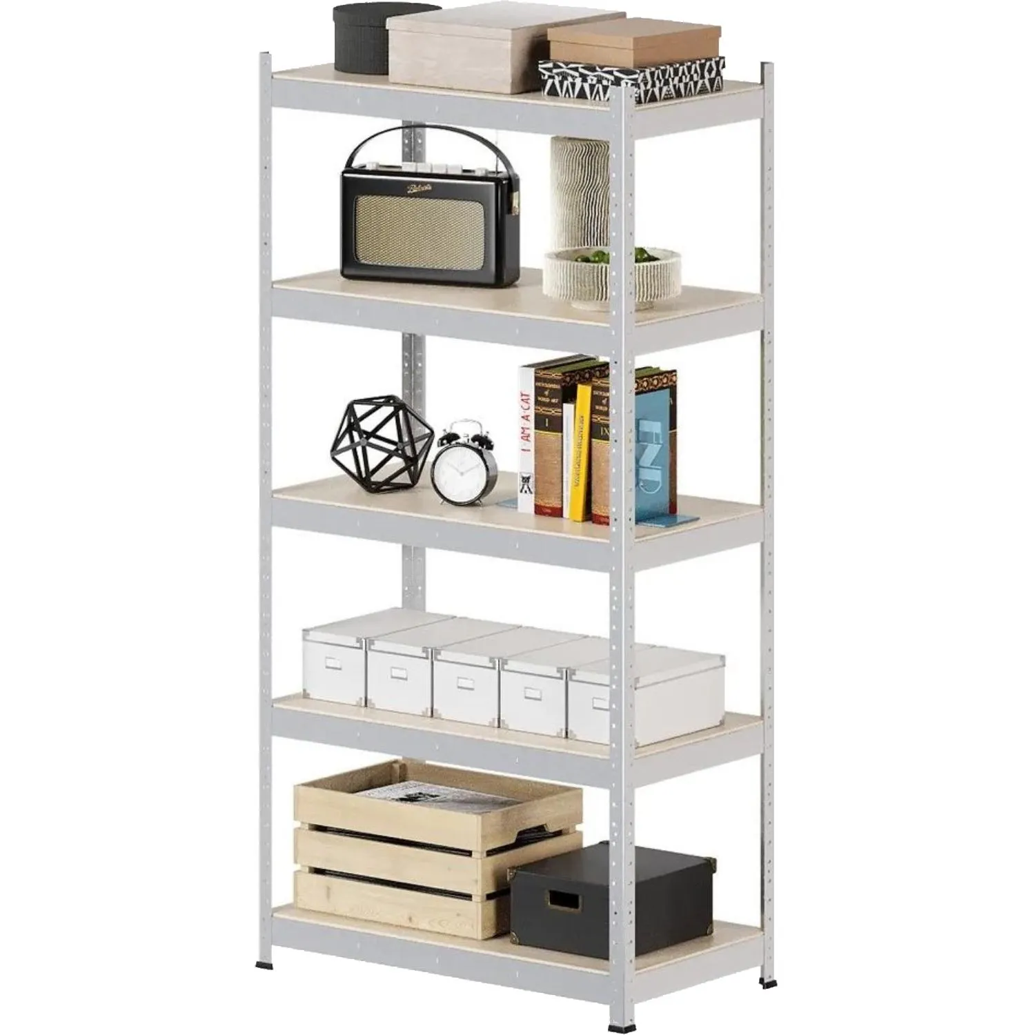 Стеллаж металлический — это недёжное и функциональное решение для хранения различных предметов. Изготовлен из оцинкованной стали, что обеспечивает его долговечность и устойчивость к коррозии. Стеллаж имеет размеры (ШхГхВ) 912×500×1824 мм, что позволяет разместить на нём большое количество предметов. В комплекте 5 полок из МДФ, что обеспечивает удобство использования и возможность регулировки высоты полок с шагом 38 мм. Нагрузка на полку 175 кг. Сборка стеллажа осуществляется без использования инструментов и болтов, благодаря специальным пазам. Это позволяет быстро и легко собрать стеллаж, не повреждая стены и пол. Стеллаж металлический имеет стильный серебристый цвет, который легко впишется в любой интерьер. Пластиковые подпятники на ножках обеспечивают защиту напольного покрытия от повреждений. Он может использоваться для хранения овощей и фруктов на кухне, для размещения обуви в коридоре, для хранения одежды в гардеробе, для организации рабочего пространства в офисе и т.д. Выдерживает общую нагрузку до 1000 кг, что делает его недёжным и устойчивым.