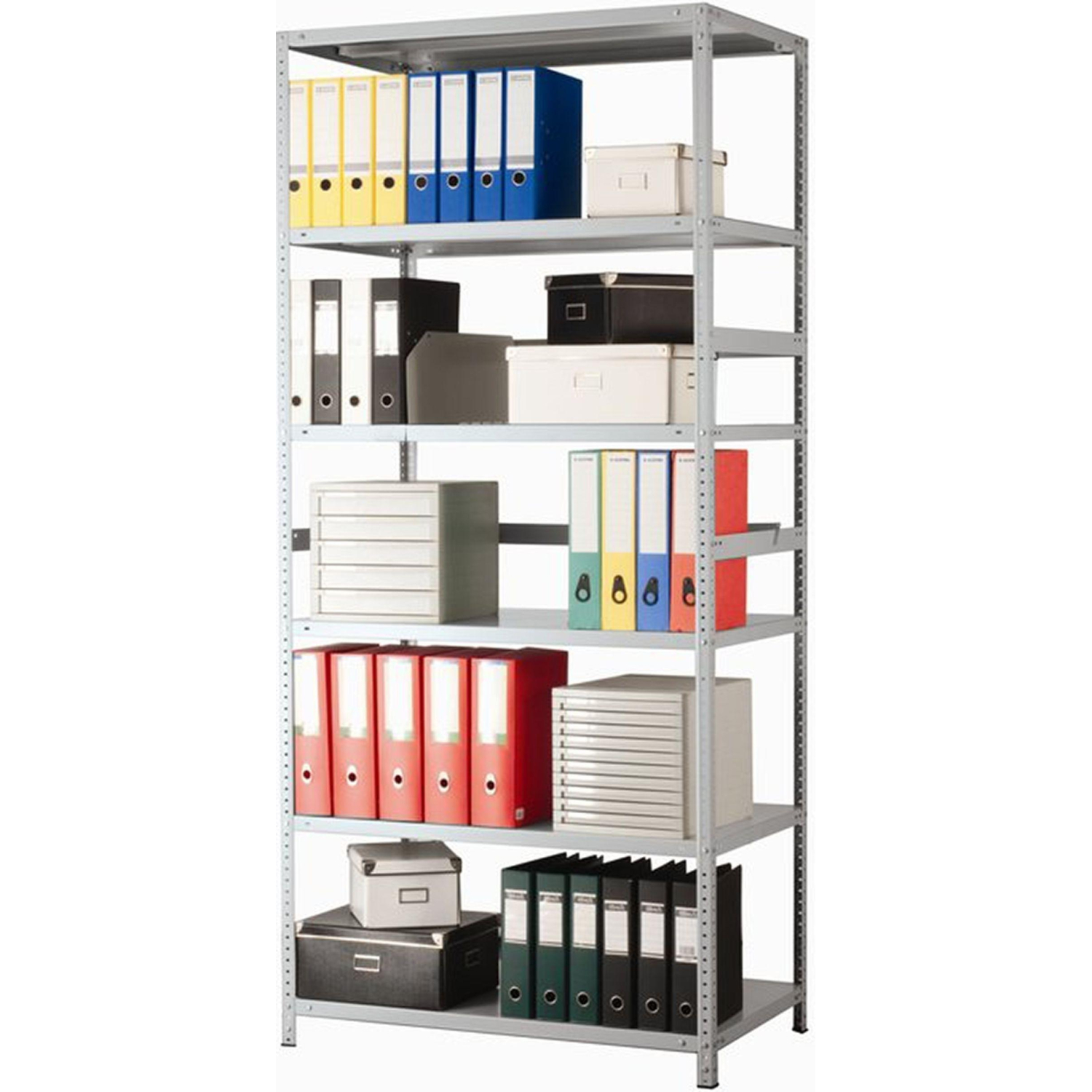 Стеллаж металлический, предназначен для хранения документов и грузов в офисе, на складах, в гаражах, в мастерских и дома. Стеллаж имеет современный внешний вид, удобную и надежную конструкцию. Легкая сборка стеллажа с использованием болтового соединения. Регулировка полок по высоте шагом 25 мм. Максимальная распределенная нагрузка на полку 100 кг. Общая нагрузка на стеллаж не более 500 кг. Цвет серый (RAL 7038). Количество полок 6 штук.