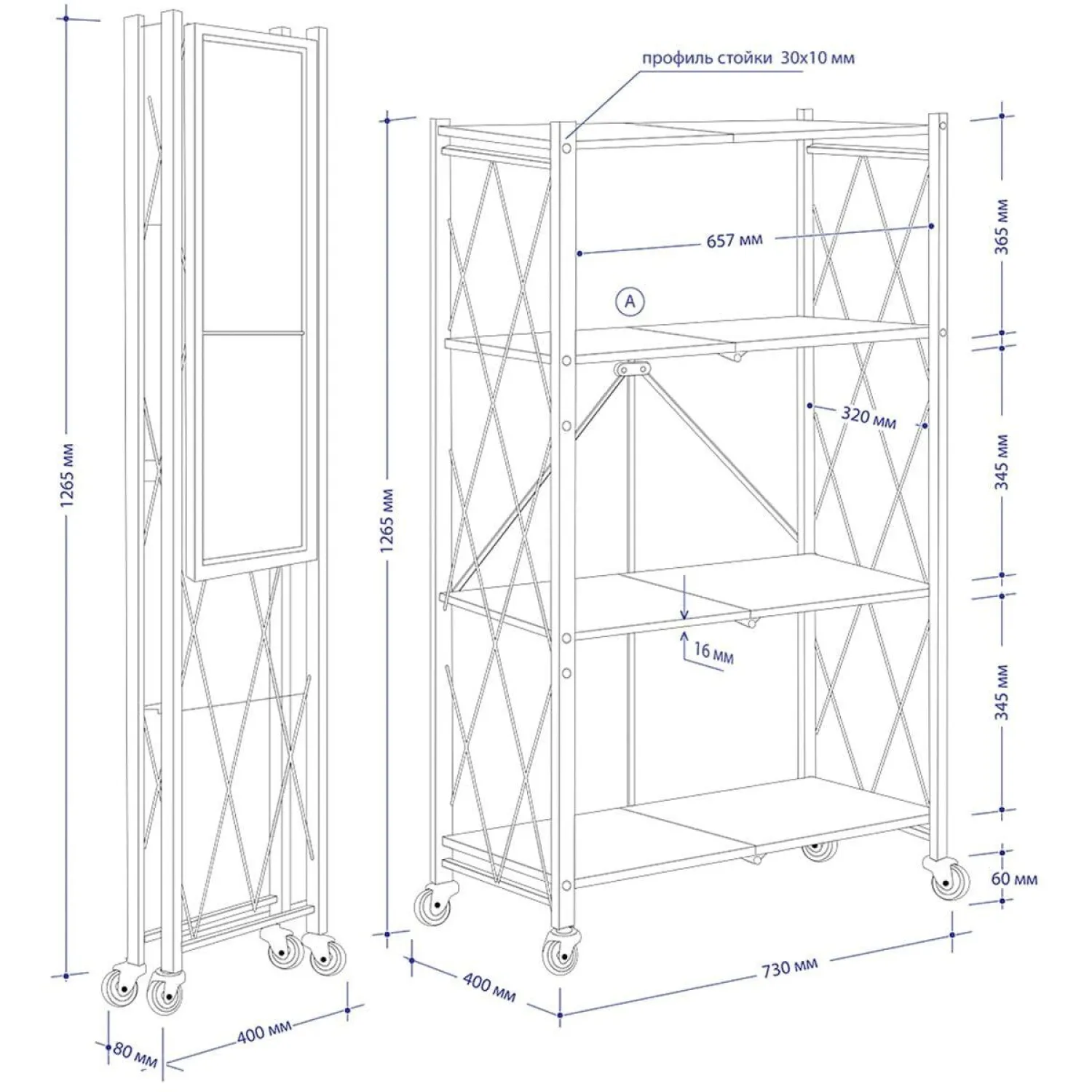 О товаре «Стеллаж складной Атлант-4 черный (4 полки, 730х400х1265 мм)»