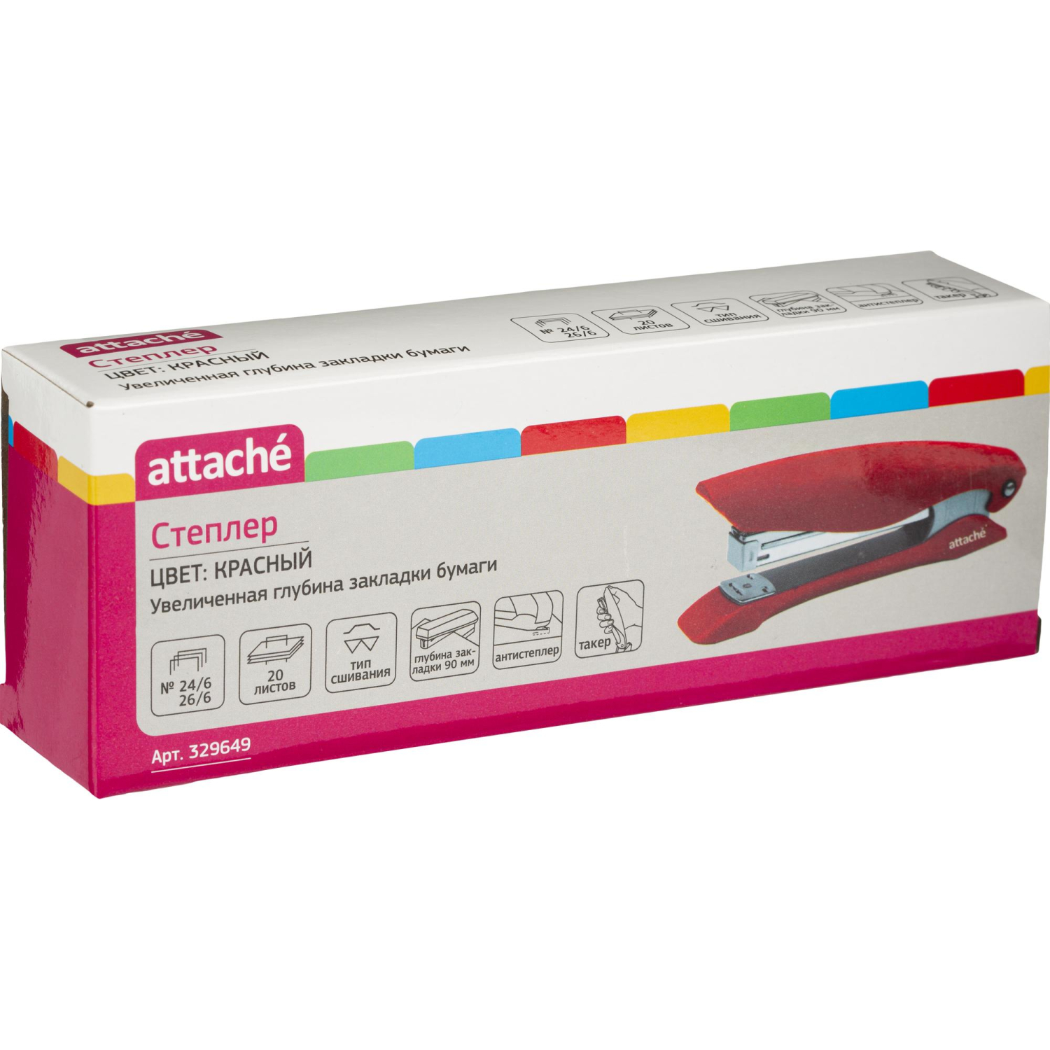 О товаре «Степлер Attache до 20 листов красный (скобы № 24/6, 26/6, с антистеплером)»