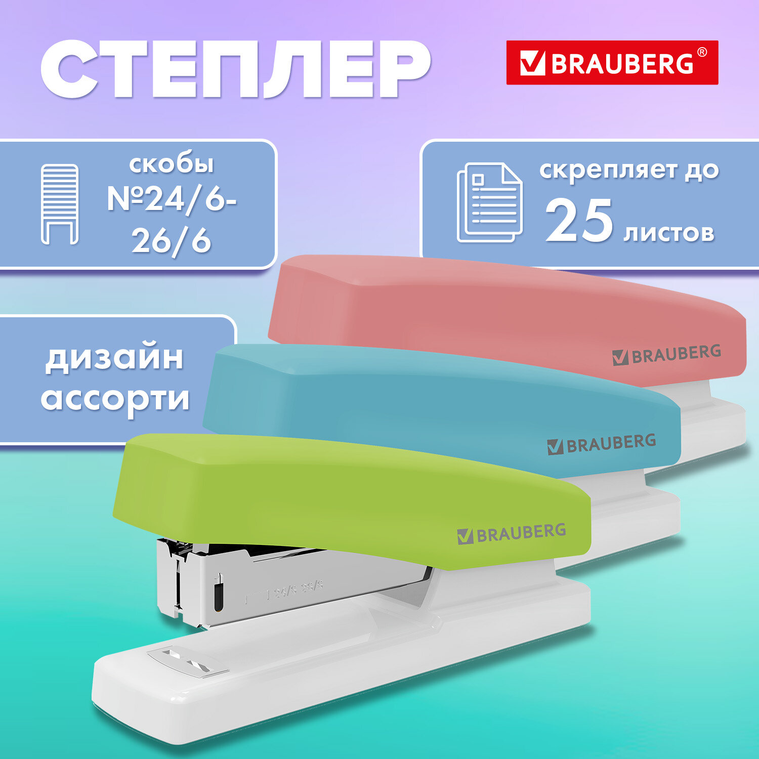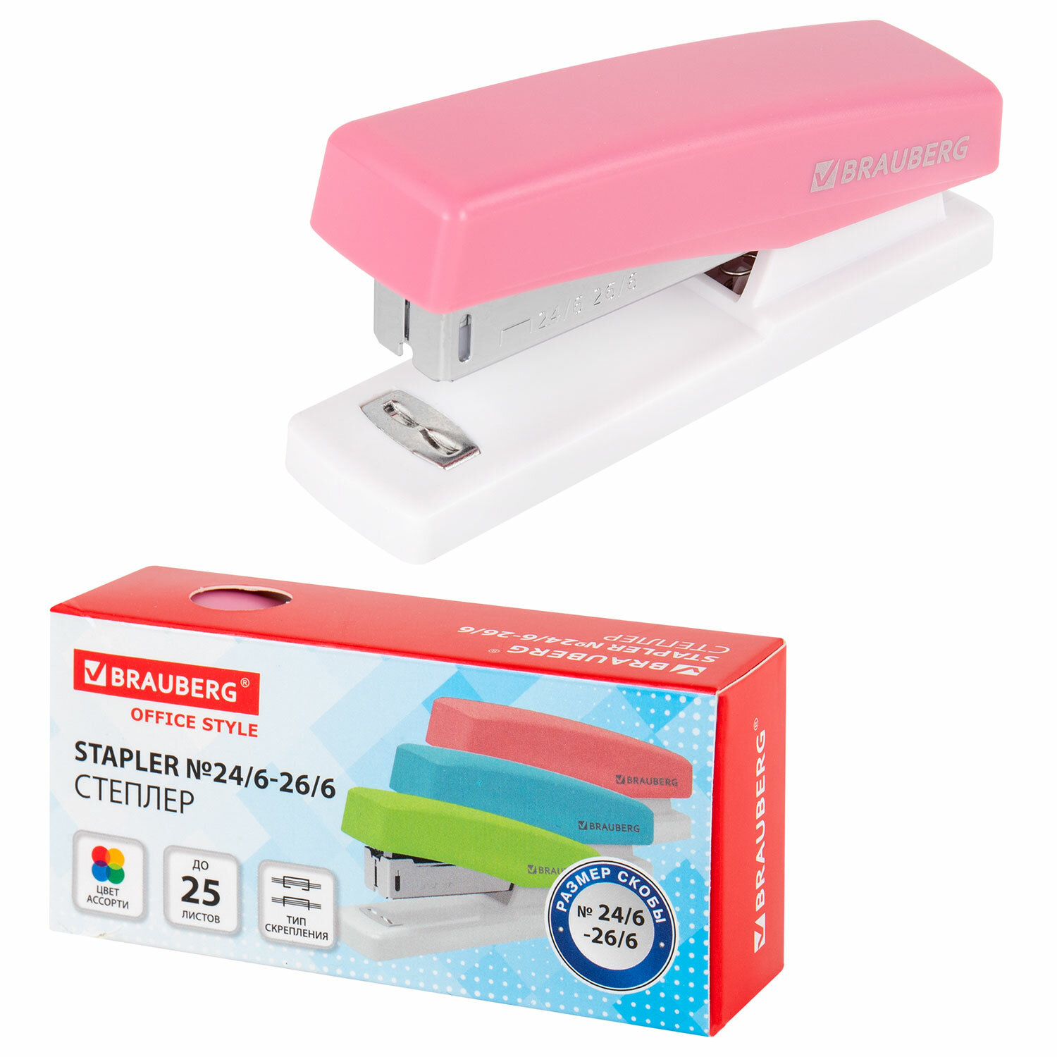 Степлер №24/6, 26/6 BRAUBERG "STYLE", до 25 листов, ассорти, 272748