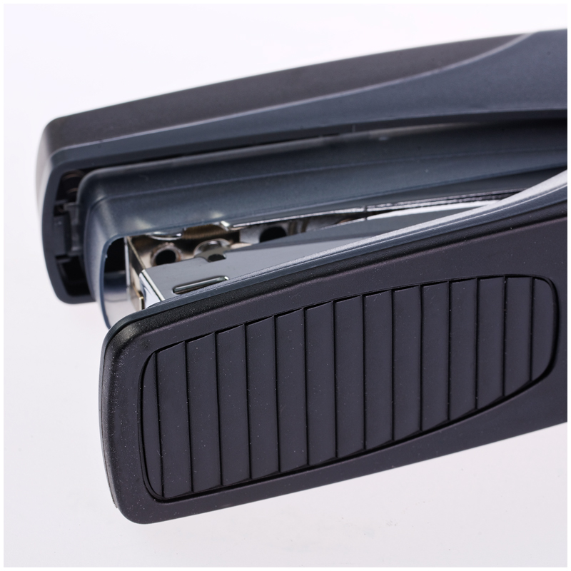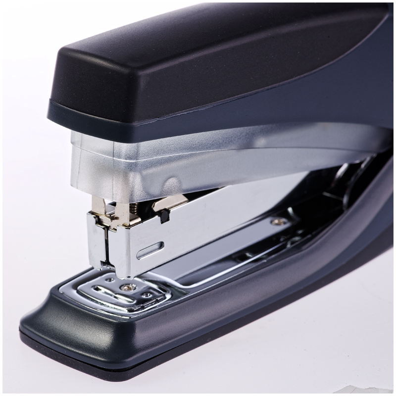 У данной модели пластиковый корпус и металлический механизм подачи скоб. Нескользящие вставки на основании и верхней части корпуса. Корпус выполнен в цветах ассорти. Упакованы в картонную коробку.