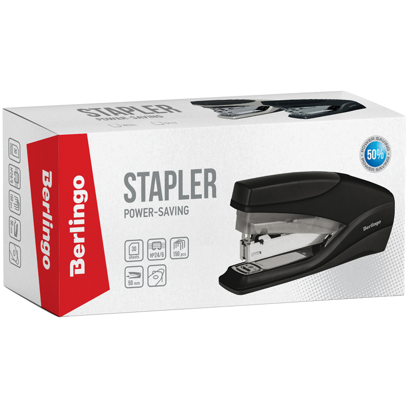 О товаре «Степлер №24/6 Berlingo до 30л., пластиковый корпус, энергосберегающий, ассорти»