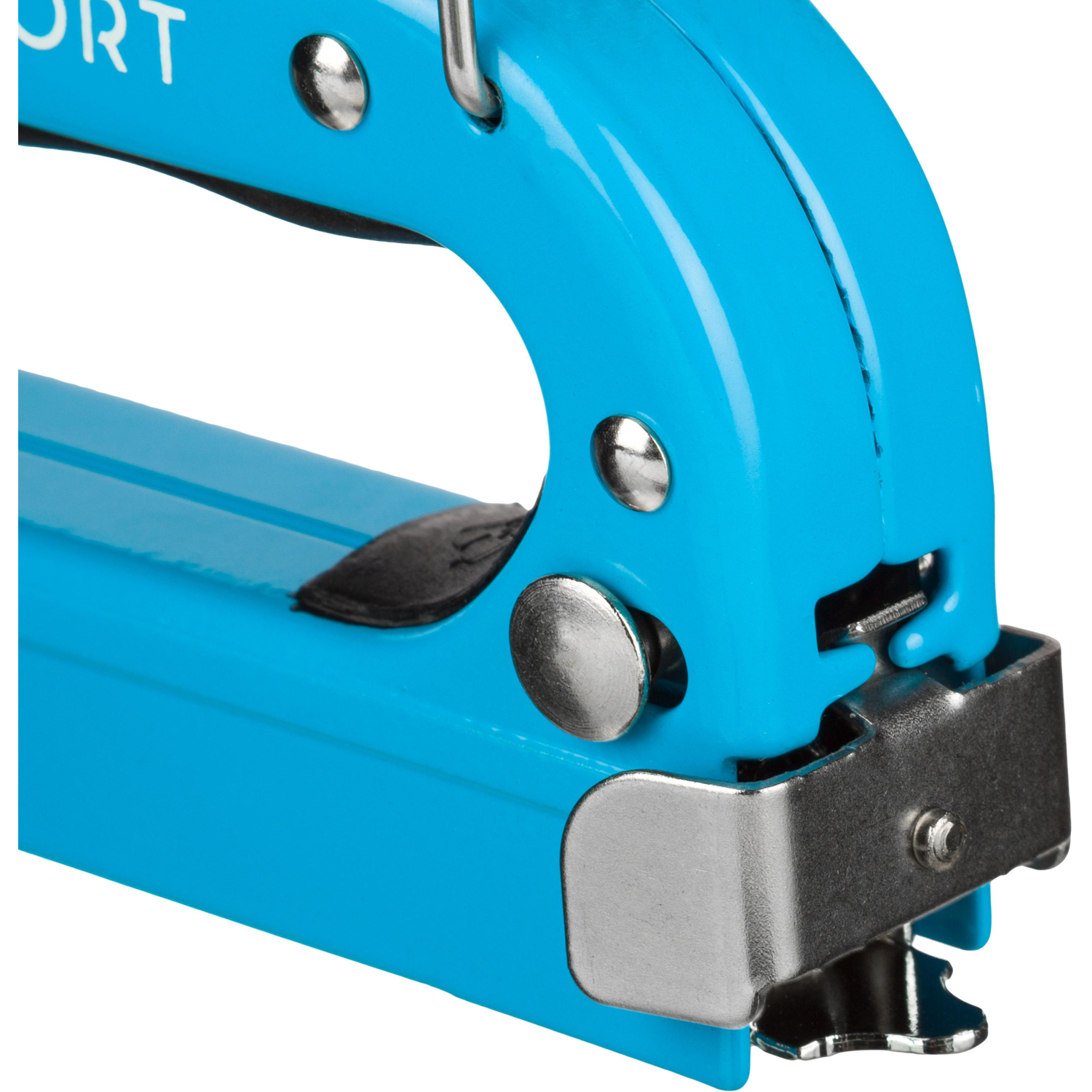 Степлер строительный Topfort многофункциональный с регулировкой. Применяется для крепления листового материала к дереву, фанере, ДСП; для закрепления обивки мебели, укрепления плакатов, закрепления проволочной сетки и прочее. Инструмент оснащен винтовым регулятором силы удара, за счет которого можно легко изменять давление на скобу при использовании. Регулировка позволяет подобрать правильную силу под конкретный материал, с которым производятся работы. В комплекте набор скоб. Преимущества изделия: - Эргономичная рукоятка облегчает использование и делает захват более комфортным - Стальная конструкция корпуса делает степлер надежным и комфортным в использовании Характеристики изделия: - Материал корпуса - сталь - Тип скоб - 57 (4-14 мм) и тип 36 (10-12 мм), гвозди (10-14 мм) Внешний вид и/или характеристики товара могут быть изменены производителем в соответствии с производственным процессом.