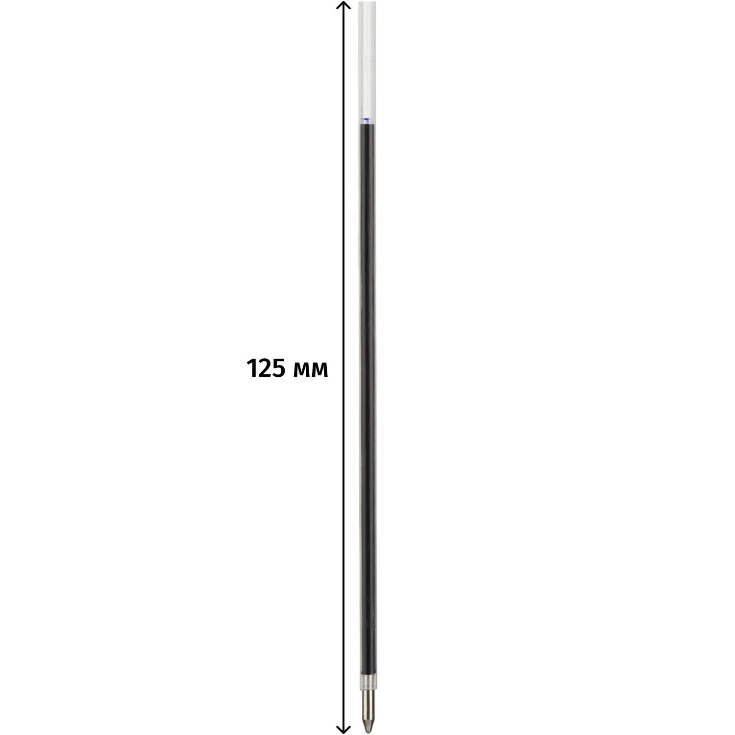 Стержень для шариковой ручки с чернилами синего цвета, толщина линии письма — 0,5 мм, длина стержня 125 мм.