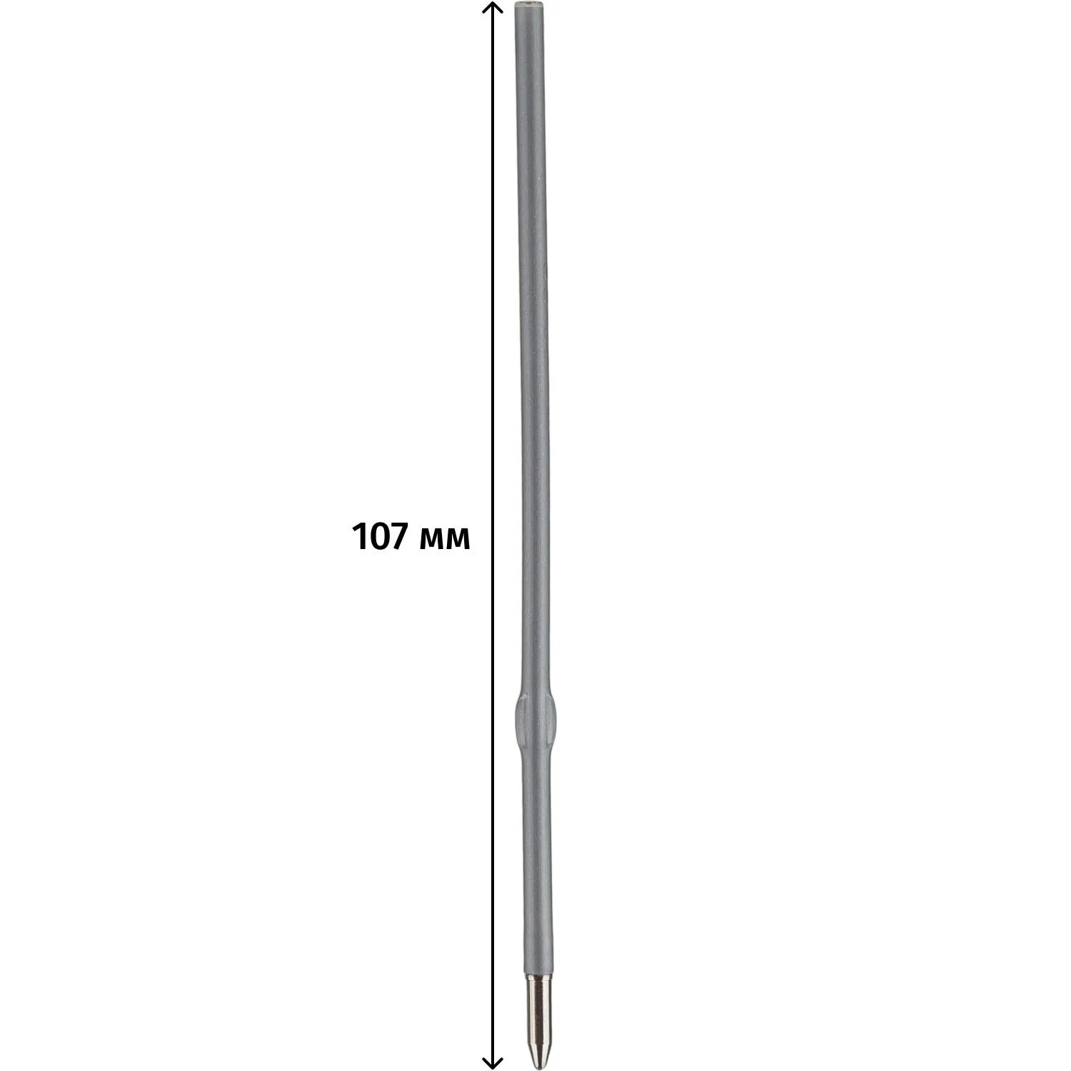 Стержень для шариковой ручки с чернилами синего цвета, длина стержня — 107 мм. Диаметр пишущего узла 0.7 мм создает ровную линию письма, равную 0.5 мм. Тип стержня — с ушками. Имеет стандартный наконечник. Расстояние от шарика письменного узла до ушек 32 мм.
