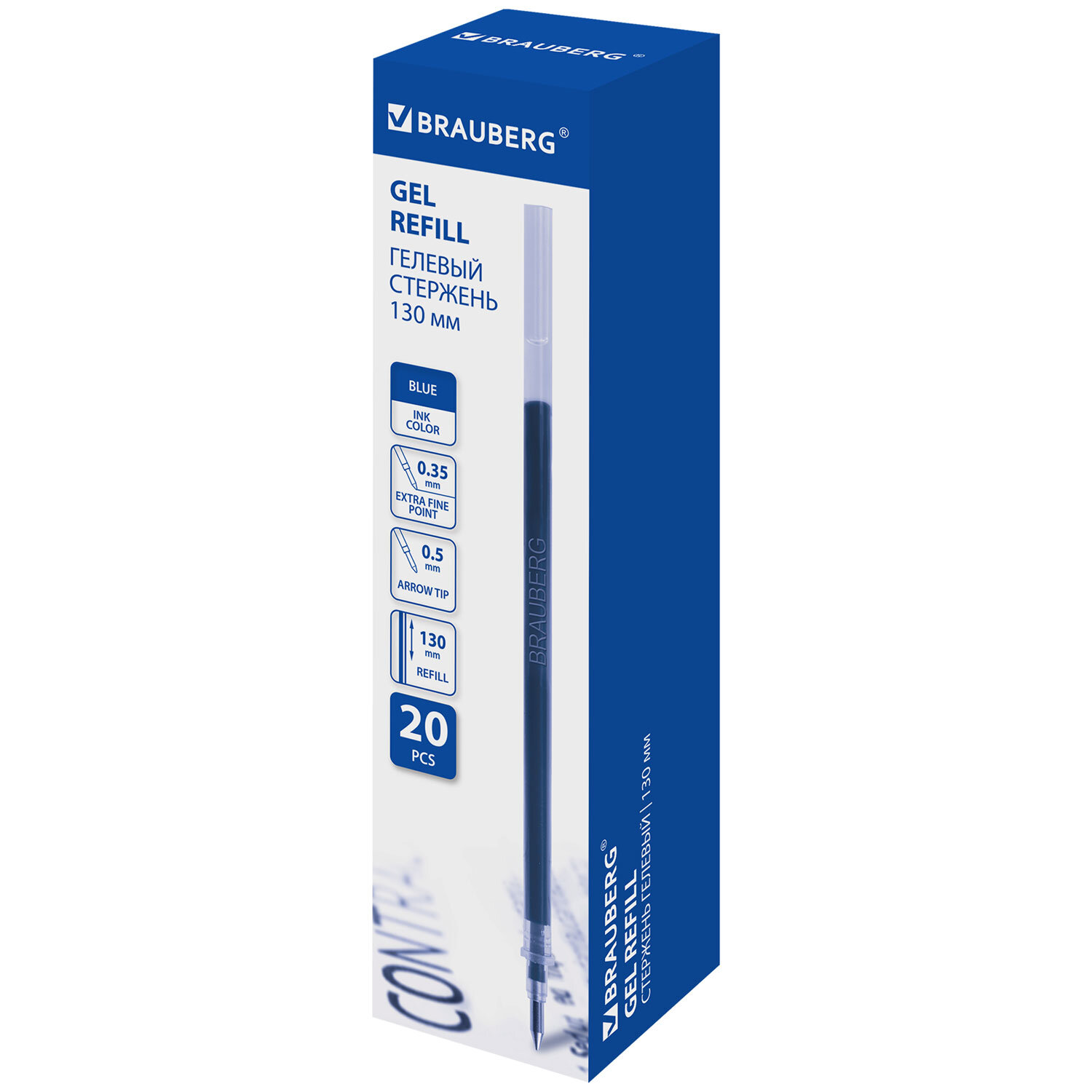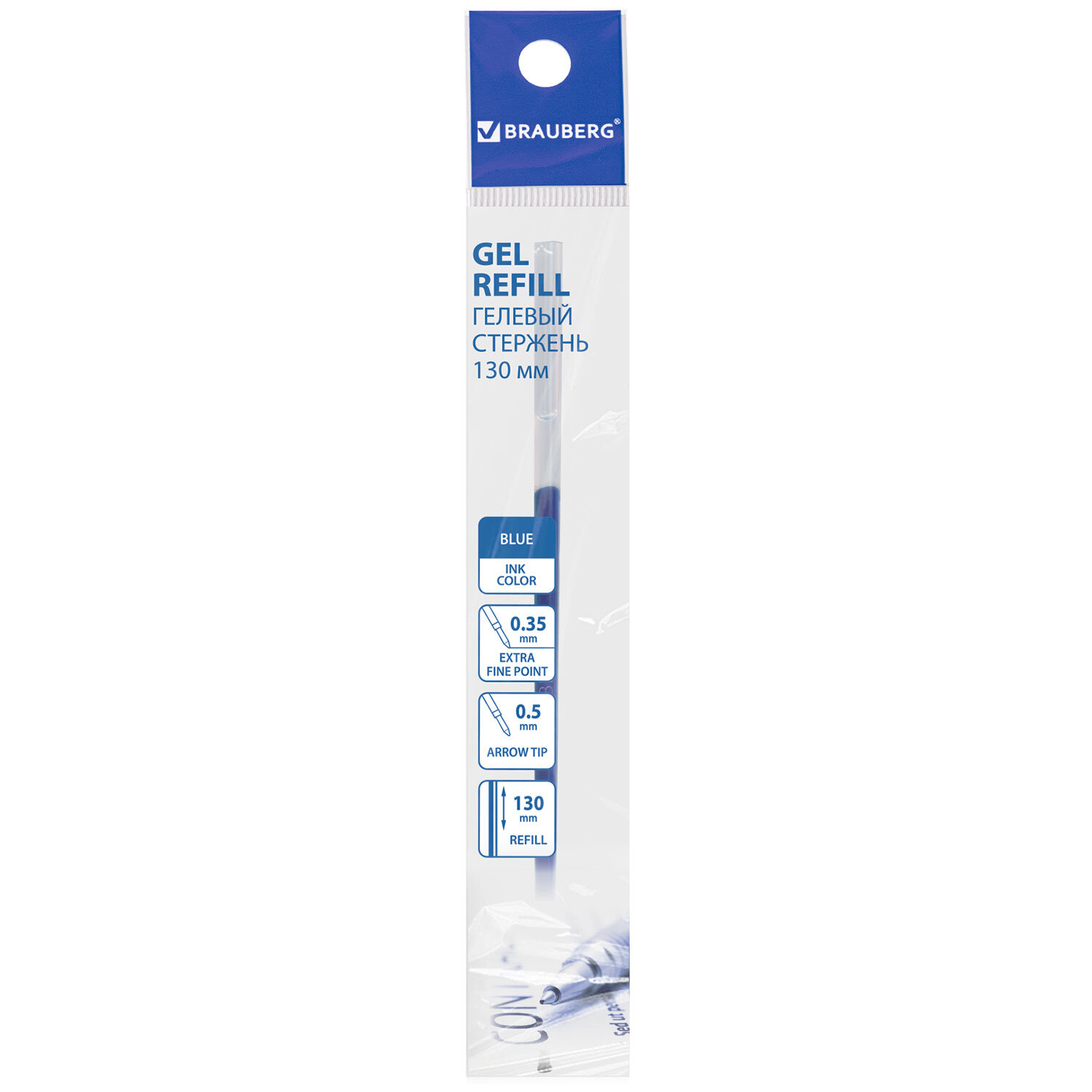 О товаре «Стержень гелевый BRAUBERG 130 мм, СИНИЙ, узел 0,5 мм, линия письма 0,35 мм, 170166»