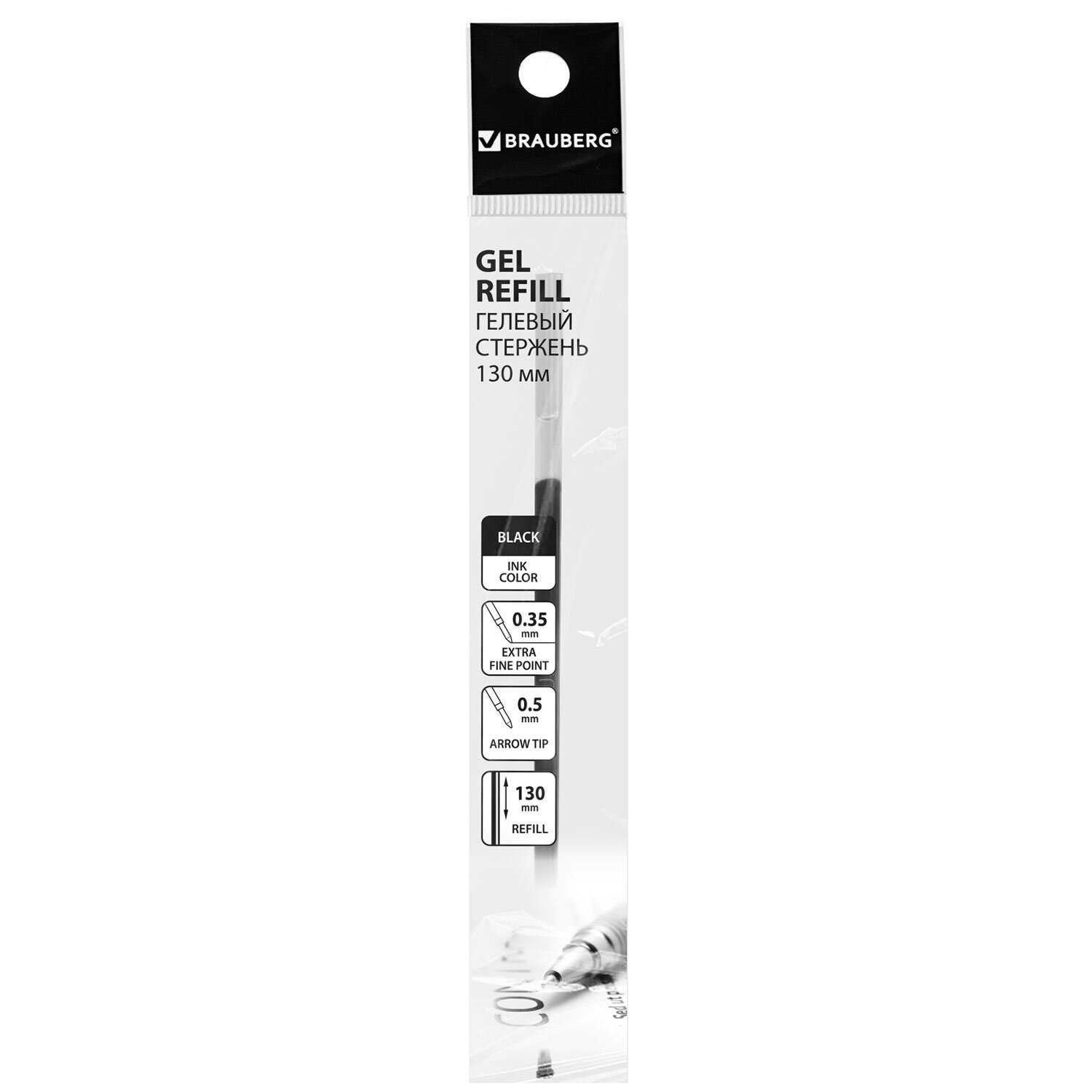 Стержень гелевый BRAUBERG 130 мм, ЧЕРНЫЙ, узел 0,5 мм, линия письма 0,35 мм, 170167