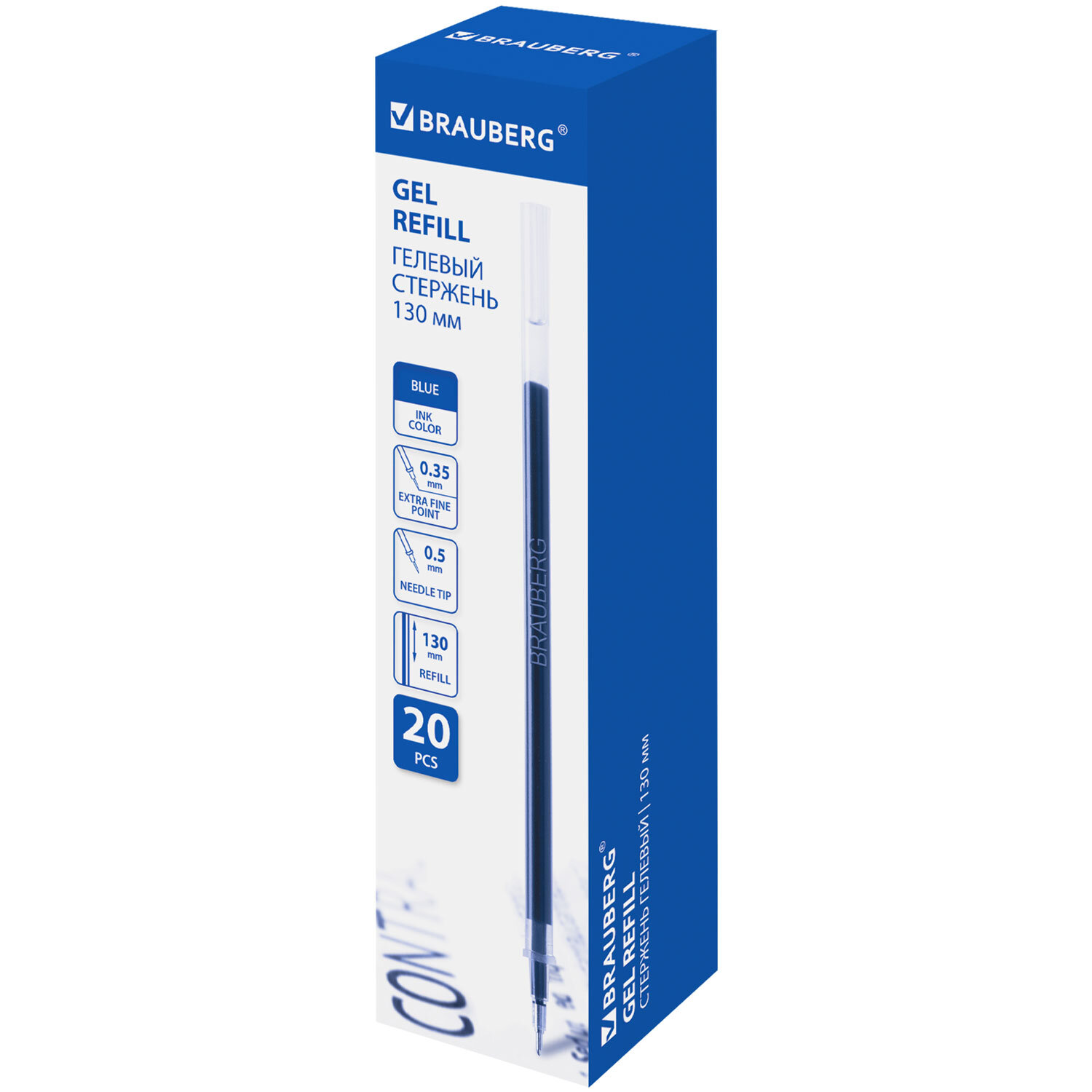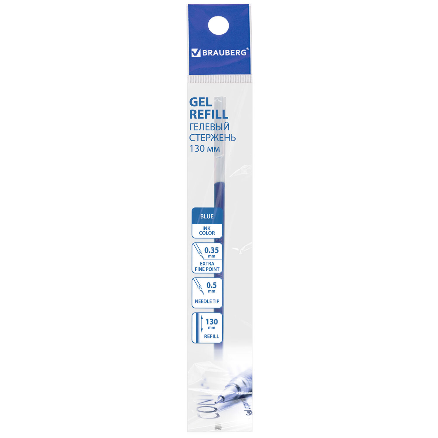 О товаре «Стержень гелевый BRAUBERG 130 мм, СИНИЙ, игольчатый узел 0,5 мм, линия письма 0,35 мм, 170169»
