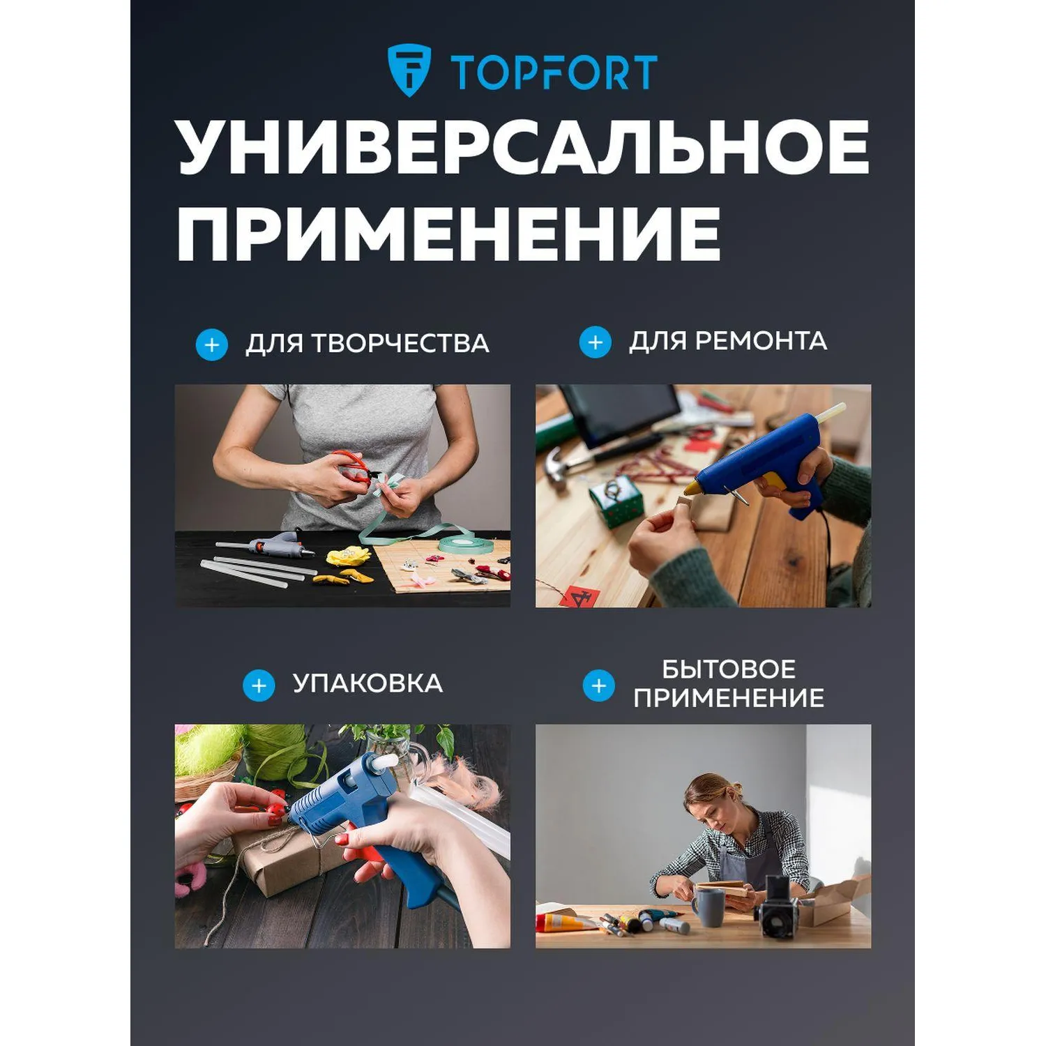 О товаре «Стержни клеевые для термопистолета TOPFORT 7x200 мм прозрачные 20 штук в упаковке»